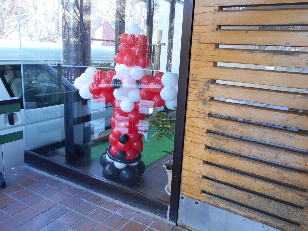 玄関脇に山形市内紅の蔵堀野責任者がバルーン作家に依頼して製作した風船サンタクロースをくださりお客様を出迎えています。