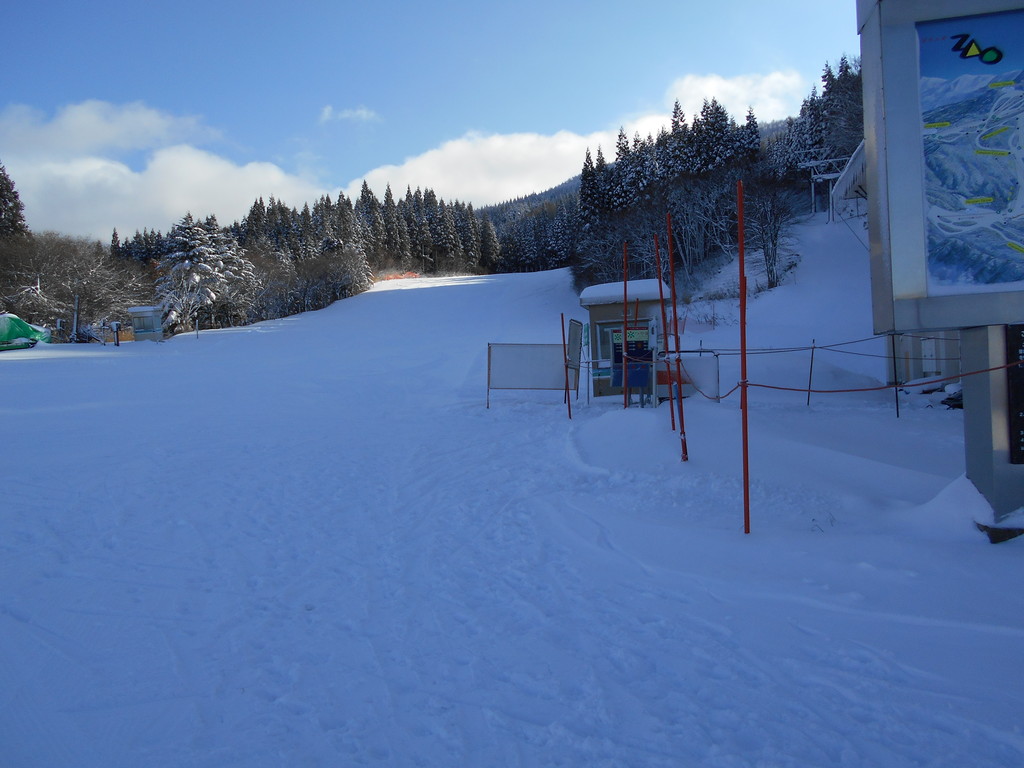 大平コース入口ロープを張っています!!!蔵王温泉観光会社が上の台ゲレンデから大平コース中間まで圧雪してくれました。蔵王観光会社は圧雪していません!!