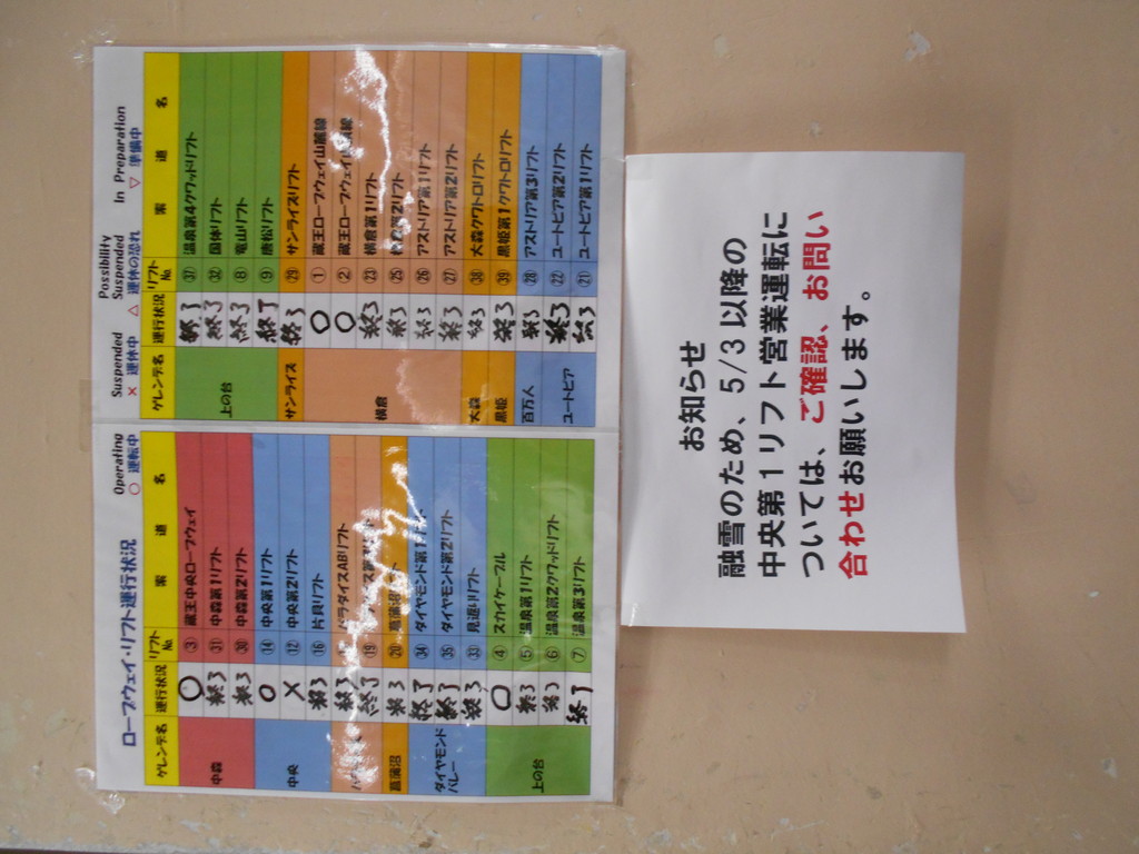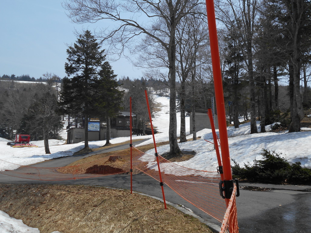 昨夜の雨で中央ゲレンデ雪が消え今日リフト終了!!!