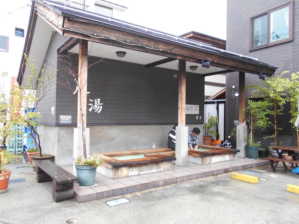 ろばた本店の足湯です、蔵王温泉にある3ヶ所の足湯で屋根があるのはここだけです、無料で足湯が出来ます。昼食にジンギスカンがお食べになれます!!1
