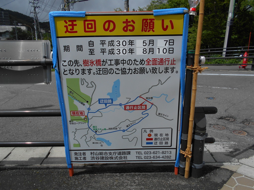 蔵王公園線樹氷橋修理工事で通行止5月7日より!!!