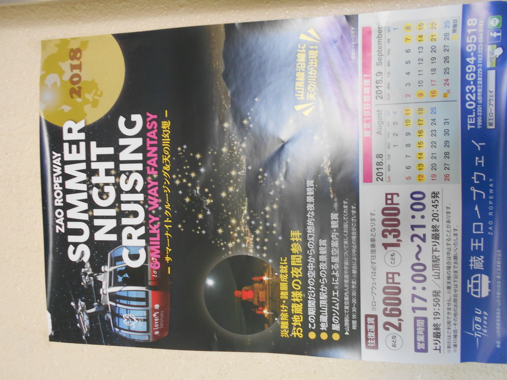 ル・ベール蔵王玄関前・朝7時・22度・曇・弱風・早朝からミーミーゼミが大合唱・今朝の鳥兜ライブカメラ真っ白でホワイトアウト・五郎岳は見えません!!!地蔵山は横倉ライブカメラでクッキリと見えます!!!蔵王温泉湯煙り散策ツアーのポスターがつるやさんから送信されました!!!20時樹氷通りローソン出発→高湯通り温泉街入口→下湯→上湯→川原湯→郵便局前→樹氷通り→ローソン前・徒歩で約40分の散策です。申込は必要ありません!!!