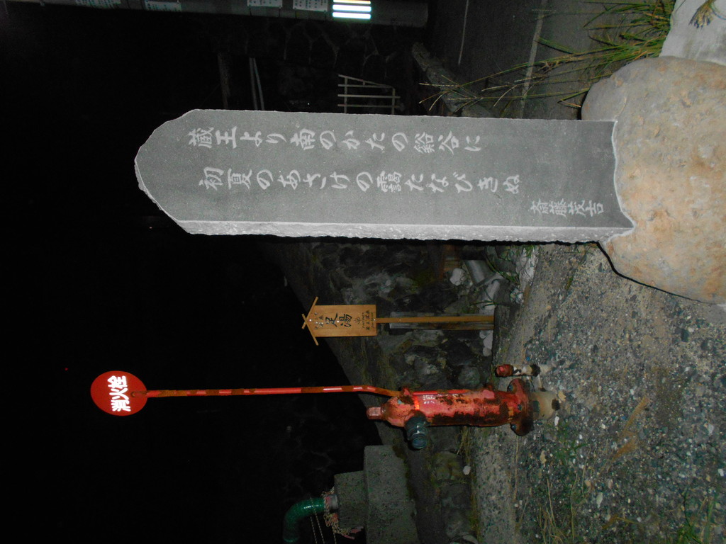 蔵王文学のみち湯の歌碑16番わかまつや旅館前の斎藤茂吉翁昭和19年出典の「たましひを育みますと聳えたつ蔵王のやまの朝雪げむり」の歌碑です!!!