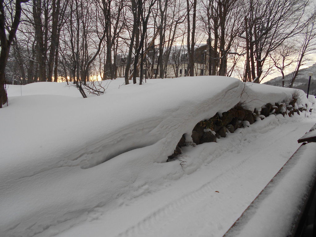 ル・ベール蔵王玄関前・朝7時・―7度・雪・新雪10cm以上積もりアイスバーンが雪の下に隠れました!!今日地蔵山頂・さんべ喫茶店。ル・ベール蔵王レストランで台湾・日本公演される岡本かの子作品を基にした映画の撮影が行われました。山形出身の男優と女優が主演でル・ベール蔵王に県内報道13社の記者が集まりました!!!