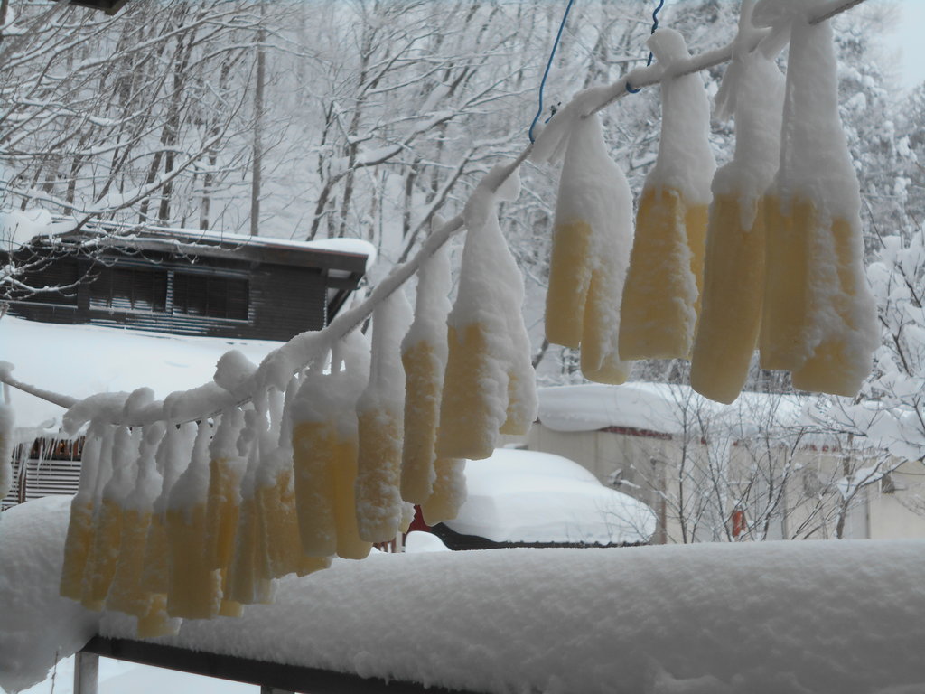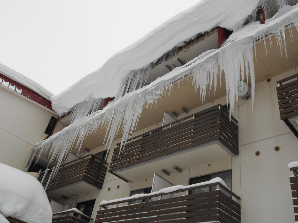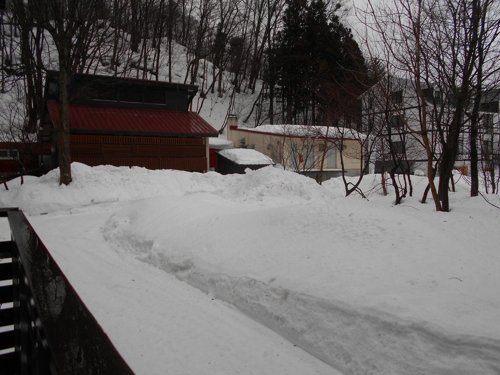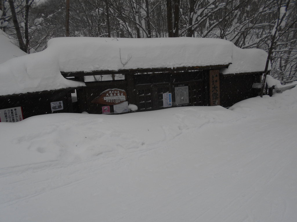 温泉棟の屋根の雪が落ち湯管を直撃浴槽に温泉が来ない事故が数回ありました。温泉に入ったスタッフが浴槽に温泉が来ていないと発見それから雪の壁を登り湯管を繋ぎます!!!
