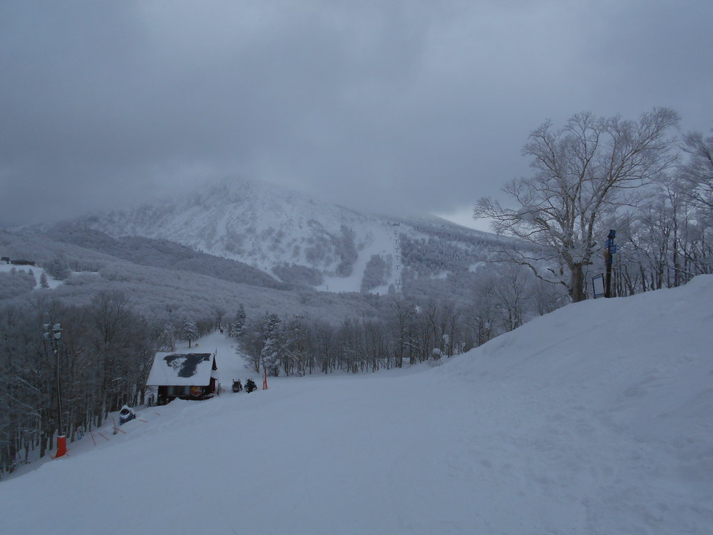 ゲレンデは滑る方が少なくマイゲレンデ状態です。積雪165cmですが国体コース最上は土が露出寸前??