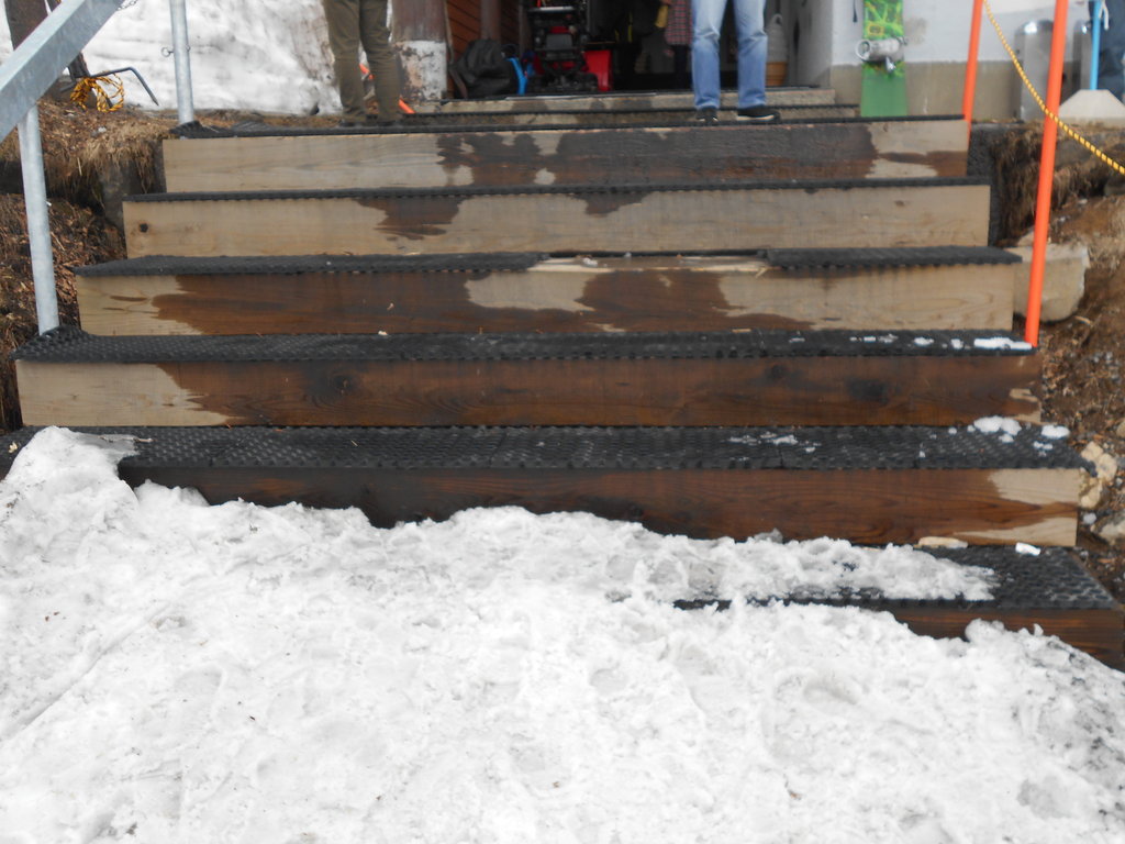 鳥兜駅の階段8段目が雪の上に出ましたまだ7段雪の下です!!!
