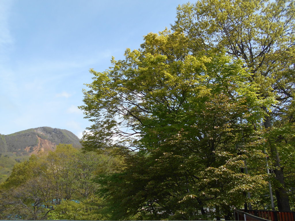 ル・ベール蔵王玄関前・朝7時・13度・晴・エゾハルゼミが鳴き始めました!!!5月7日より整備運休中の蔵王ロープウェイ5月23日で終了・5月24日から運行します。5月24日は地蔵山頂駅から100mの蔵王地蔵尊様の蔵王地蔵尊様春季例大祭が行われます!!!