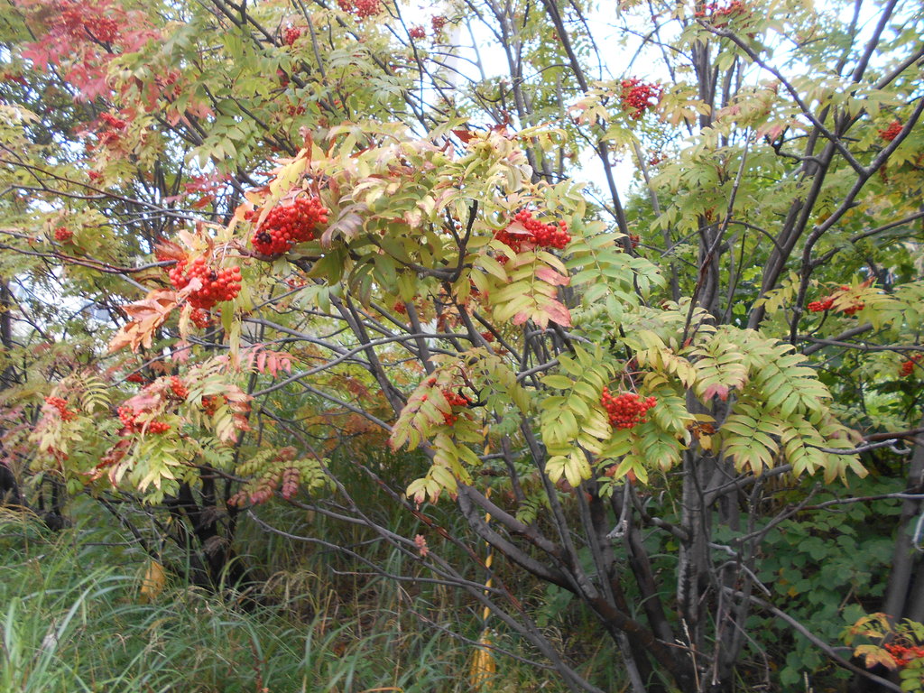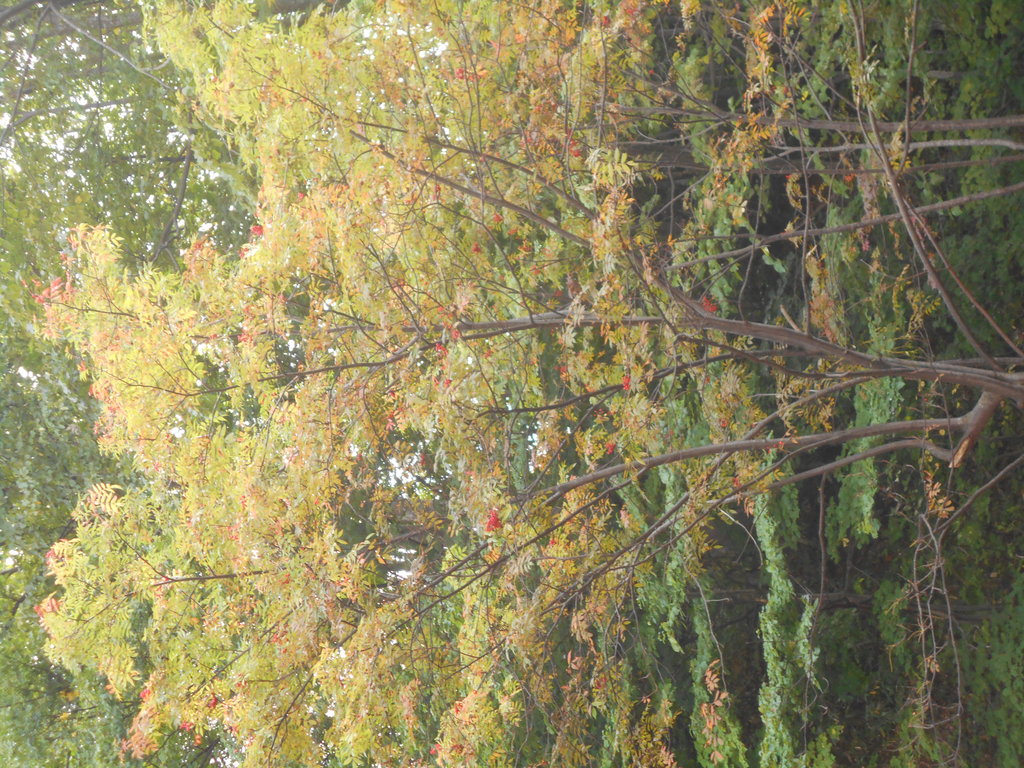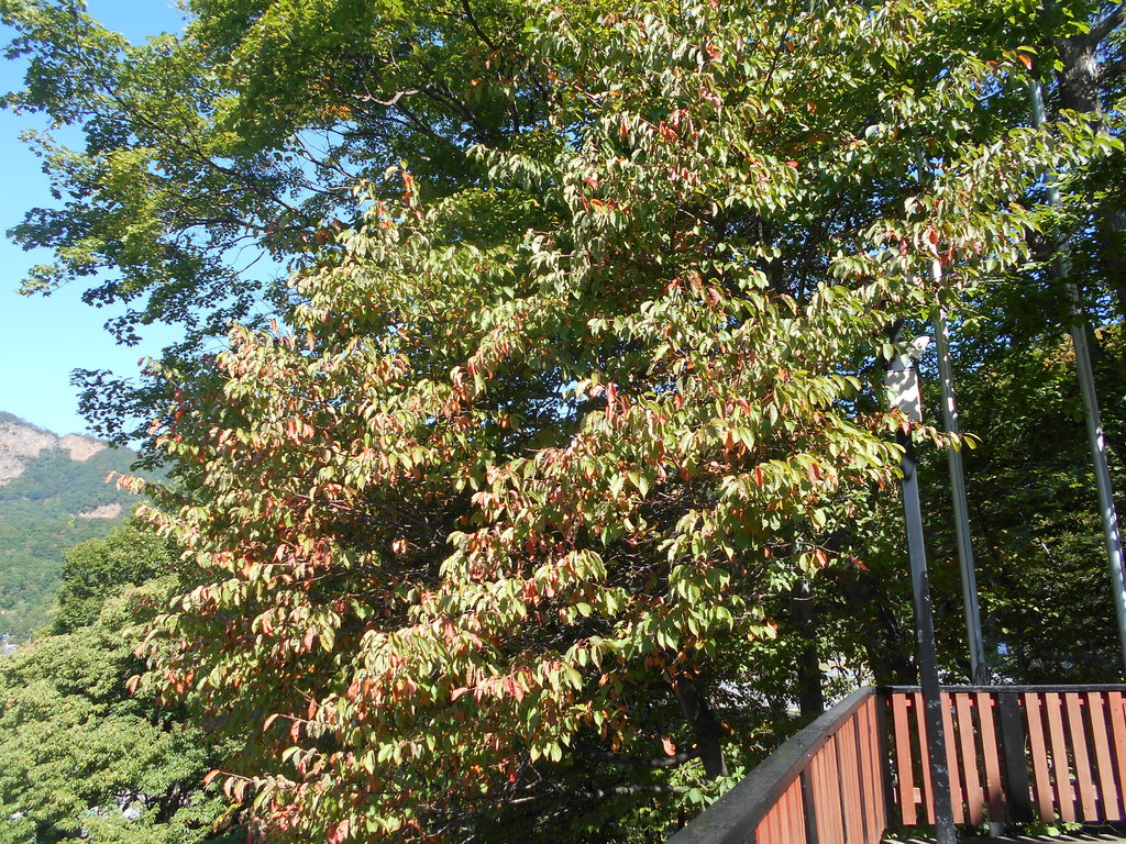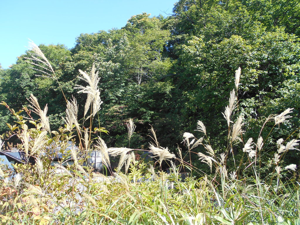 ル・ベール蔵王玄関前朝7時・18度・晴・弱風・気の早い木々は黄色くなり始めました、ドングリも風が吹くと庭に沢山落ち始めました!!!標高1,331m樹氷高原のブナ林ブナの実がありません、熊が食べるブナの実が無いので登山の際には熊に気をつけて下さい!!!
