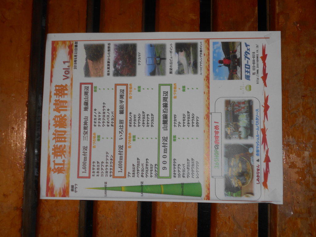 ル・ベール蔵王玄関前朝7時・16度・雨模様・台風の影響で強風・紅葉前線情報VOL.1・1,600m付近三宝荒神山・地蔵山周辺、ミネザクラ色づき始め・1,400m付近、いろは沼・観松平周辺・ブナ・オオカメノキ色づき始め、900m付近山麓駅沿線周辺ナナカマド色づき始めと掲載されています。明日蔵王地蔵尊秋季例大祭が標高1,661m地蔵尊様前で行われます。その前朝9時15分蔵王温泉バスターミナルから稚児行列が酢川温泉神社迄行われます。