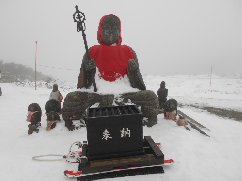 蔵王地蔵尊様に今シーズンの安全とお客様の沢山の来残山をお祈りして来ました。-8,4度・風速8mと体感温度―16度としびれる寒さで香港からのグループの皆さん大喜びでした!!!!