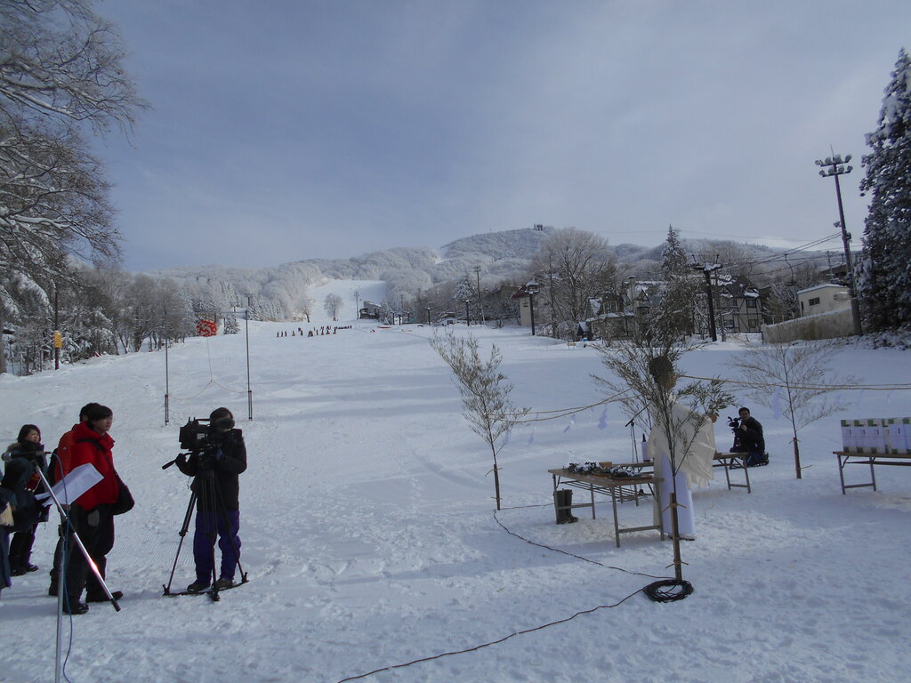 全ての県内テレビ局がスキー場開きに取材しに来ていました。昨日上ノ台からサンライズ・中森ゲレンデを滑って帰館しましたが水分の多い重たい新雪で滑りづらかった!!!