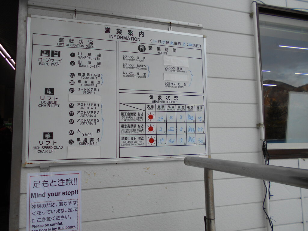 温泉第一・見返り・中央第一(鳥兜)・ユートピアの4本のリフト稼働しています!!!ロープウェイ・ケーブルの4本も稼働しています。蔵王ロープウェイには台湾・シンガポール等インバウンドの団体が大型バスで観光に来ています!!!