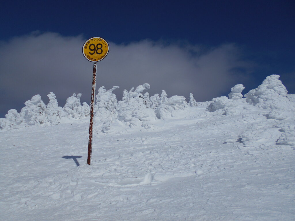 山形市林道「紅葉峠」の指導柱例年だと天辺迄雪に埋まっていますが今シーズンは大幅に少ない!!!