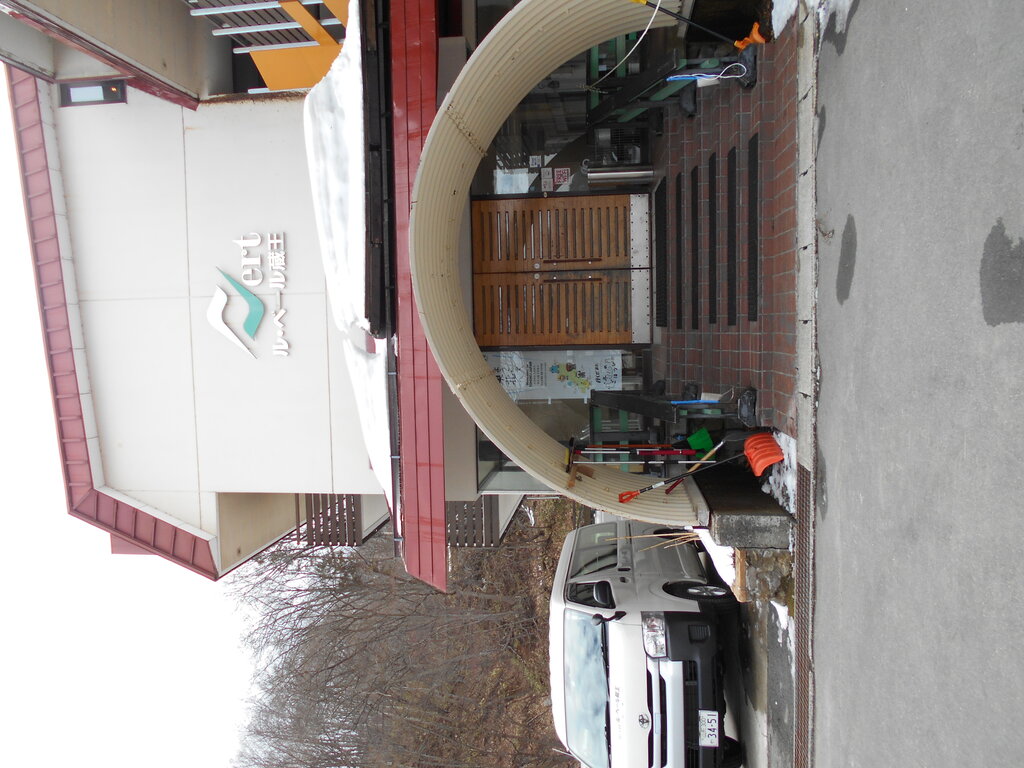ル・ベール蔵王玄関前・朝7時・3度・曇・強風・温泉駅・山麓駅駐車場満車!!!蔵王中央ロープウェイ機械故障の為運休温泉駅駐車場に駐車した方を蔵王スカイケーブル迄スタッフが送っていました!!!