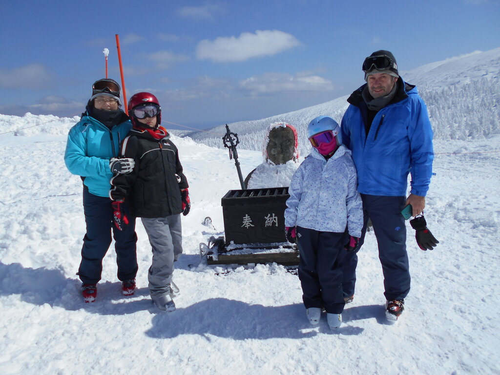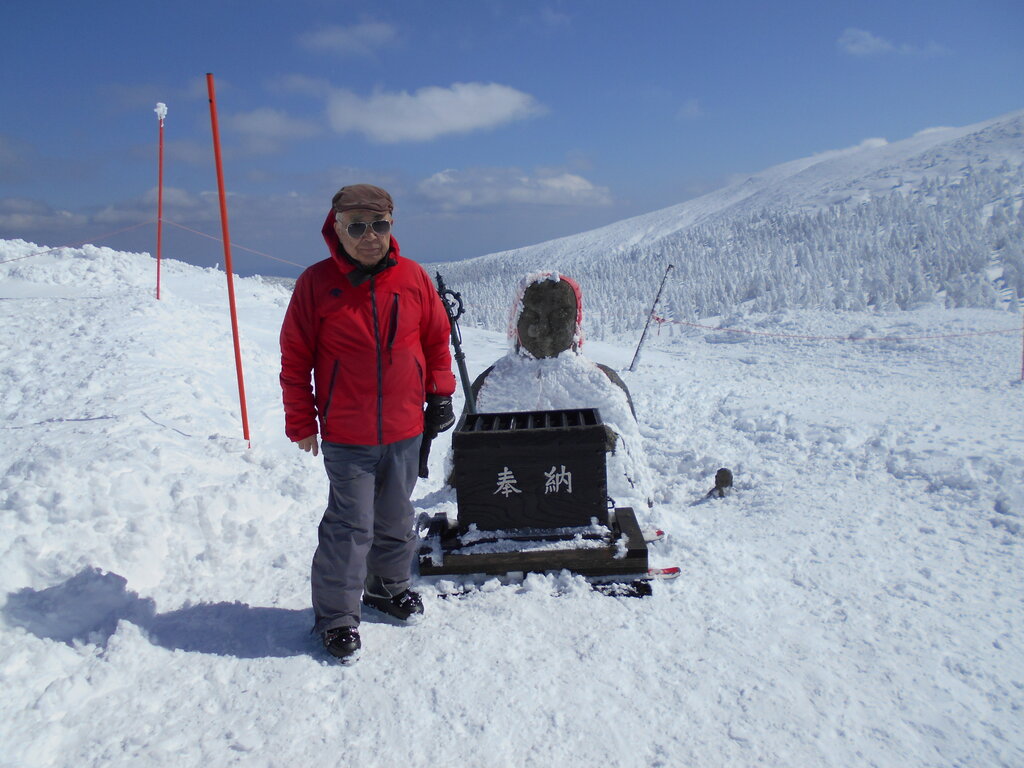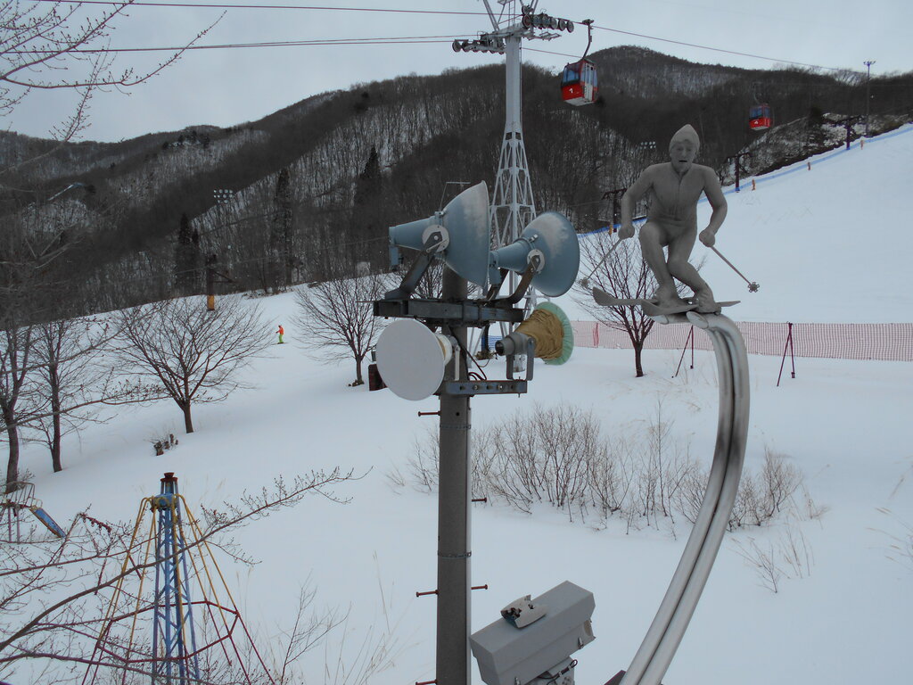 上の台ゲレンデのスキー滑走の像でん六豆の創業者鈴木伝六翁の寄贈です!!!