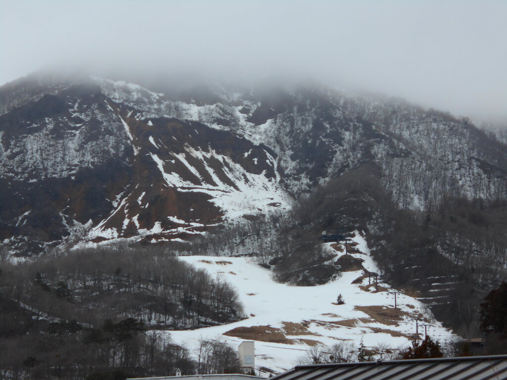 ル・ベール蔵王玄関前・朝7時・3度・強風・時々雪・朝山頂線・黒姫リフト強風で運休・その後中央ロープウェイも運休しました。午後中央ロープウェイから機械設備修理のためしばらくの間運休のFAXが入りました!!!