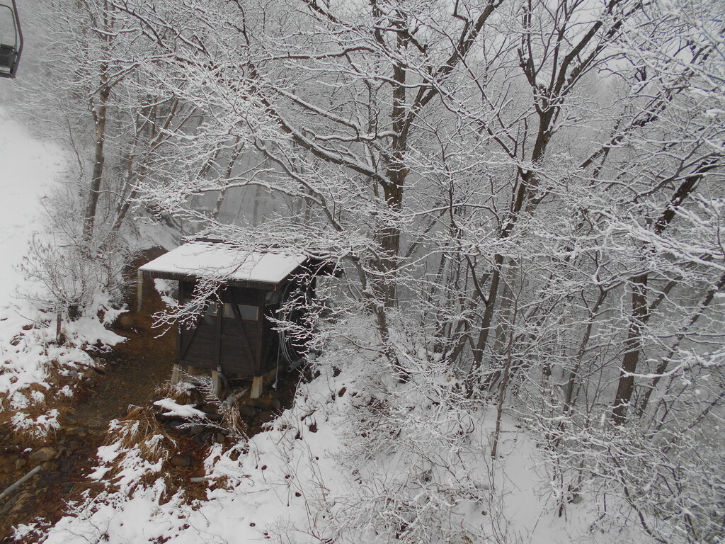 昨日温泉駅でゴンドラの前で写した写真です、いつ機械修理が終わるか未定です。