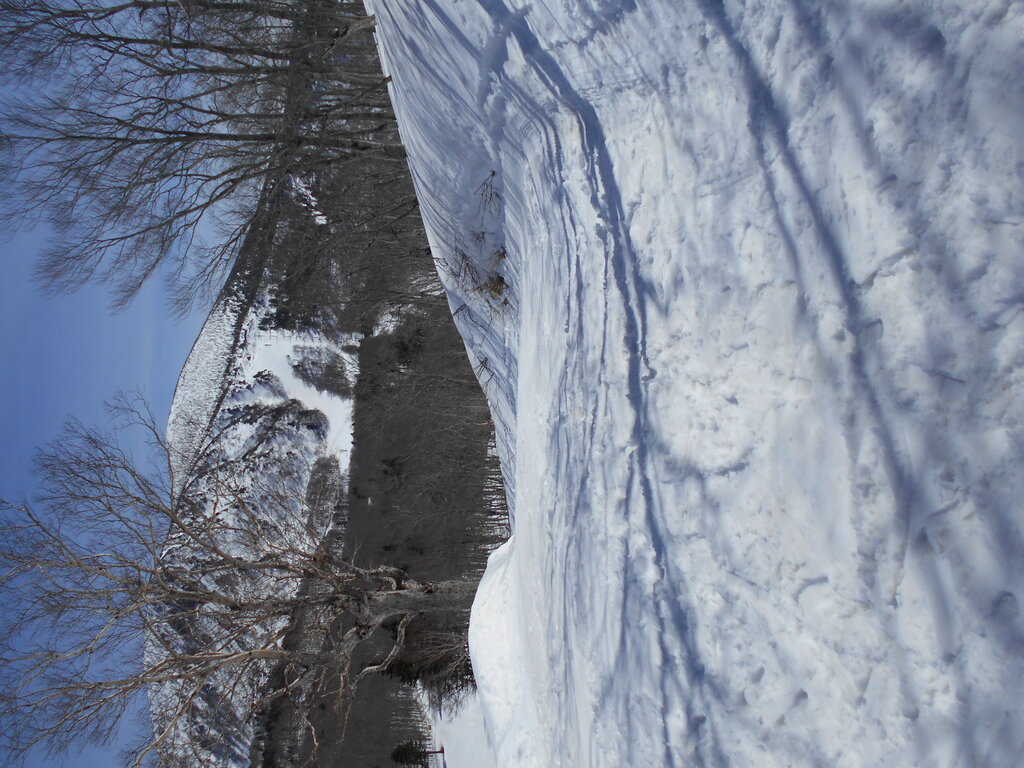 横倉の壁まだ残雪が多く真っ白です!!!ロープウェイが全て休業中なので標高1,300mの残雪の多いバーンを見に行けません!!!