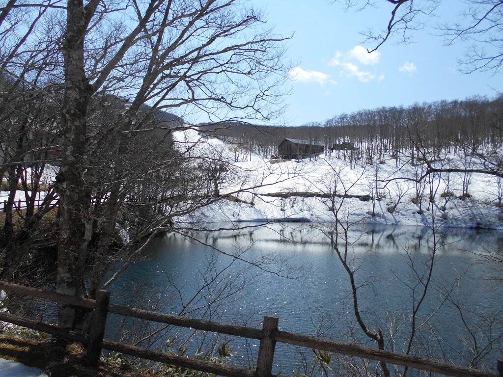 ル・ベール蔵王玄関前・朝7時・6度・晴・中風(冷たい風手袋が必携)・ル・ベール蔵王から約1km南下鴫の谷地沼の湖畔です!!!DSCN1771
