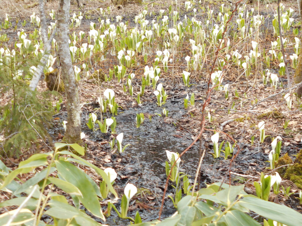 蔵王春の水芭蕉満開見頃です!!!鴫の谷地沼奥の群生地です!!!