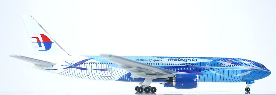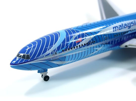 もちろん、すべてがダイキャスト製品と同じというわけではなく、たとえば脚柱の処理はトイチックなものとなっていますし、スケールがパッケージにあわせたフリーモデルとなっています。ただスケールは限りなく1:500に近く、実際に計測してみると胴体全長は126mmです。ヘルパウイングスのB777-200とほぼ同じサイズとなっているので、並べて楽しむことが可能です。