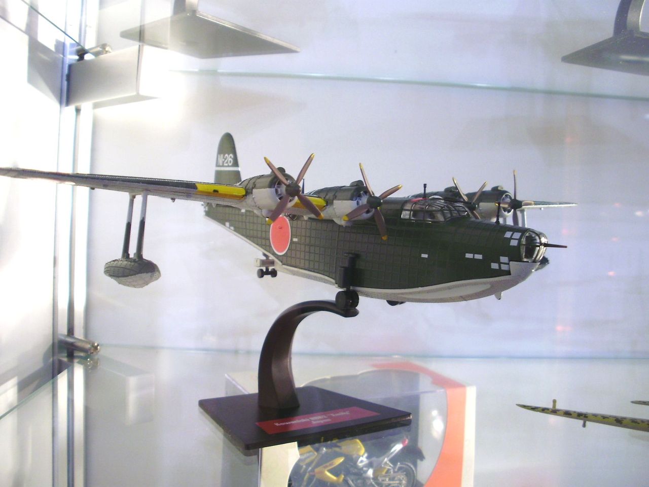 マーキングは緑&茶の迷彩塗装で、高雄空(?)所属のT-315号機となっています。ダイキャストとプラスチックを絶妙に使い分け、重量感をかもし出してもいます。スタンドが付属するので、飛行姿を堪能することも可能です。