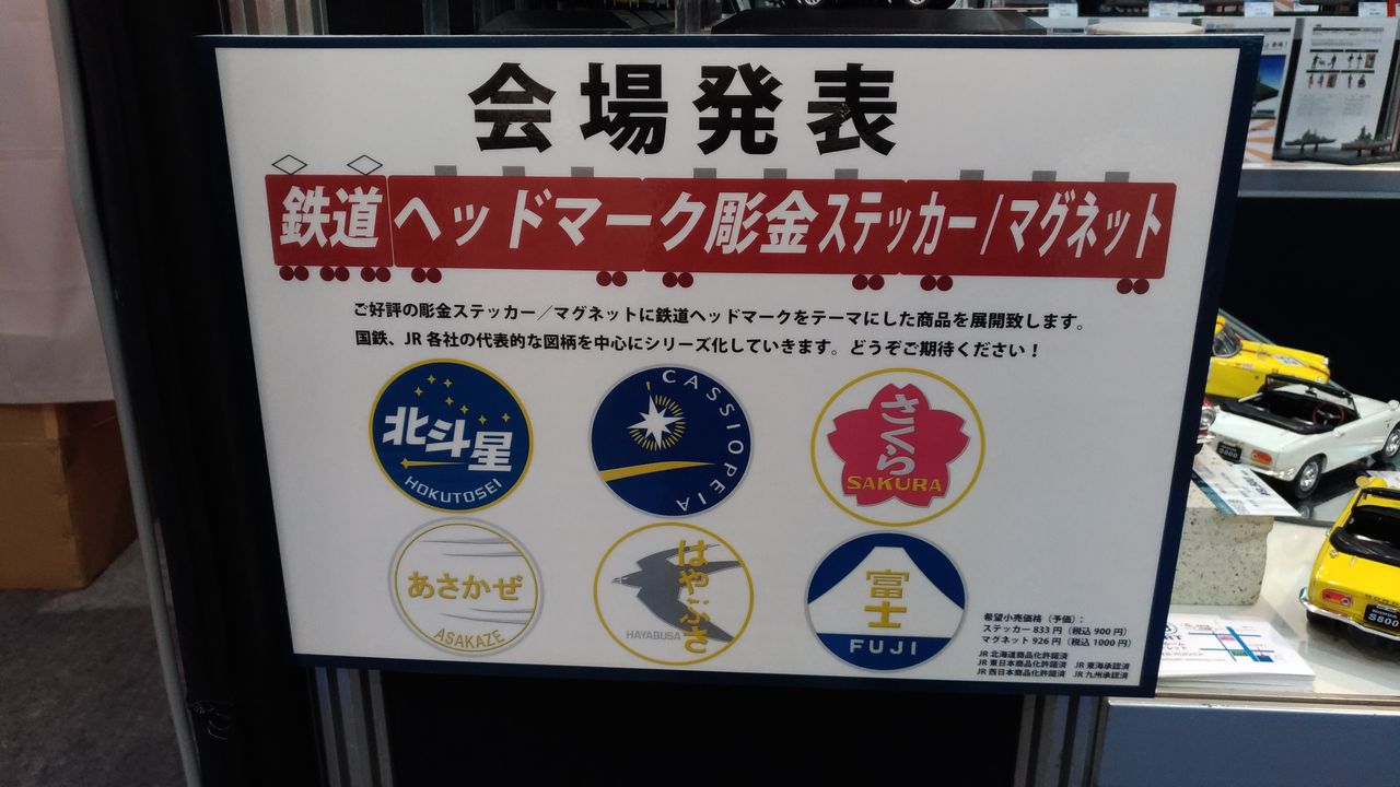 展示するのは弊社オリジナルのプルバックマシーン、好評のファーストシリーズ、そして新しいラインナップとなる鉄道ヘッドマーク彫金シリーズなどです。