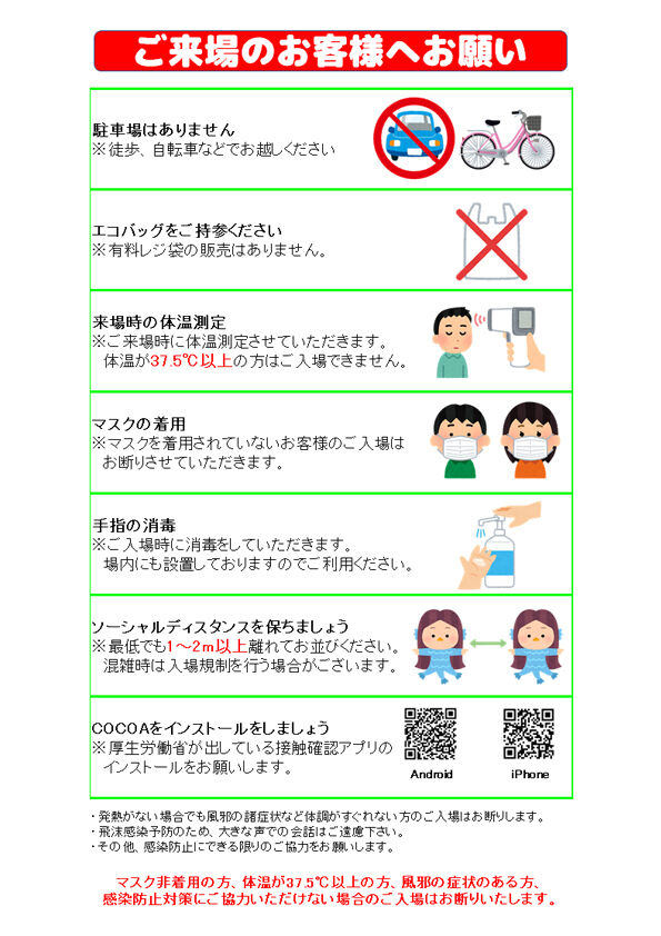 お手数お掛けしますが、感染症防止対策のためご協力をお願い致します。