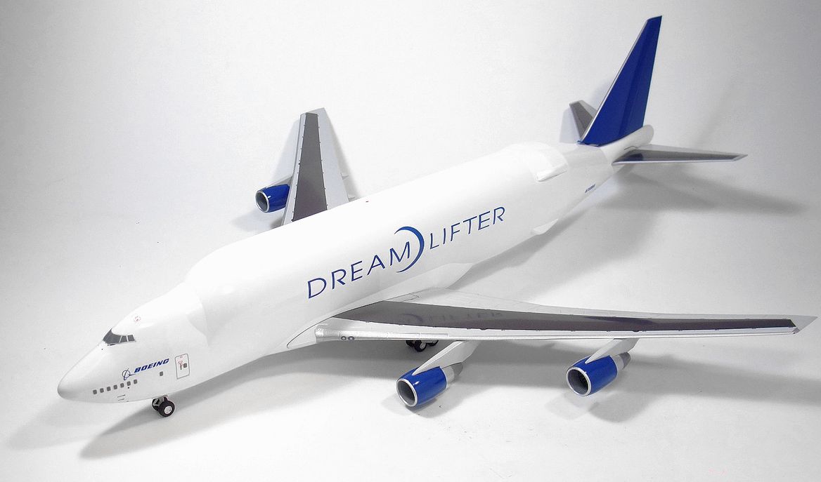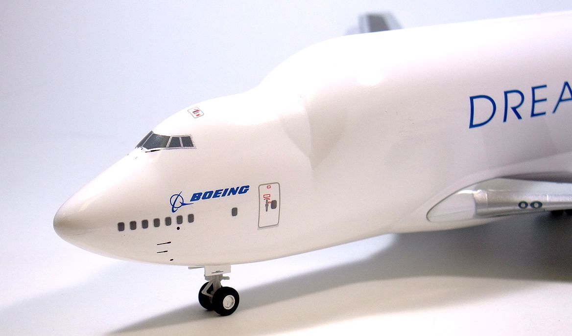 ユニークなスタイルの飛行機だけにモデルメーカーの格好の題材となっており、世界各国のいろんなメーカーから大小さざまざなモデルが発売されています。そんな中から今回紹介するのは、ホーガンウイングス製1:200スケールのスナップ・インモデルです。ボーイングへ公式モデルを納入しているホーガン社だけにスタイリングは満点。カラーリングやレタリングも正確そのものです。