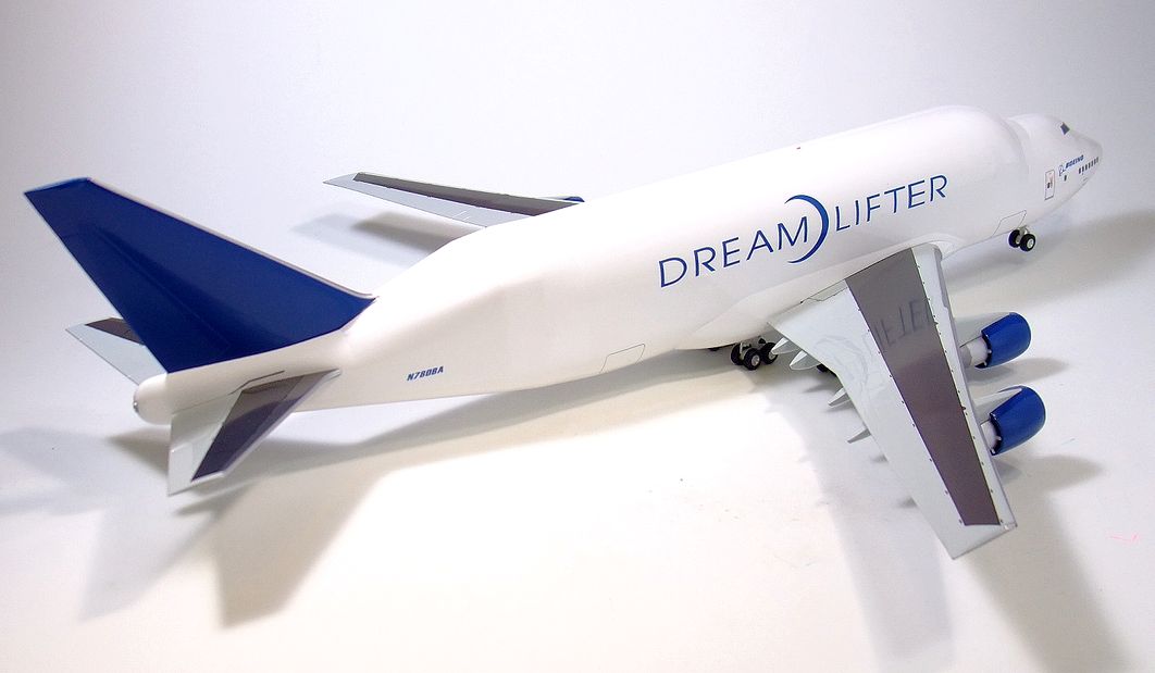 答えは簡単。翼よりも大きな飛行機で運べばいいんです。ということでボーイング社が開発したのが、ボーイング747LCFです。日本でもおなじみのB747-400をベースに胴体を再設計。横開き式に胴体が開き、大きな荷物を積めるようになっています。ちなみにLCFとは、Large Cargo Freighter(ラージ・カーゴ・フレイター)の略で愛称は「ドリームリフター」となっています。