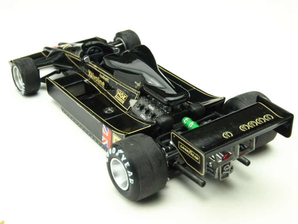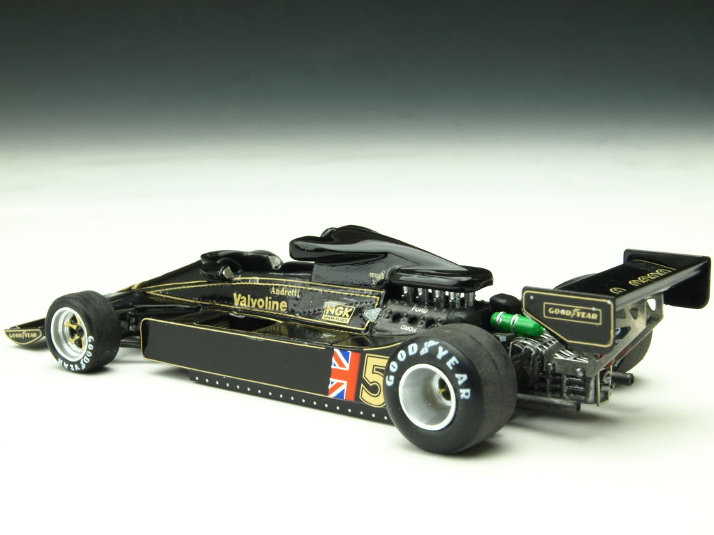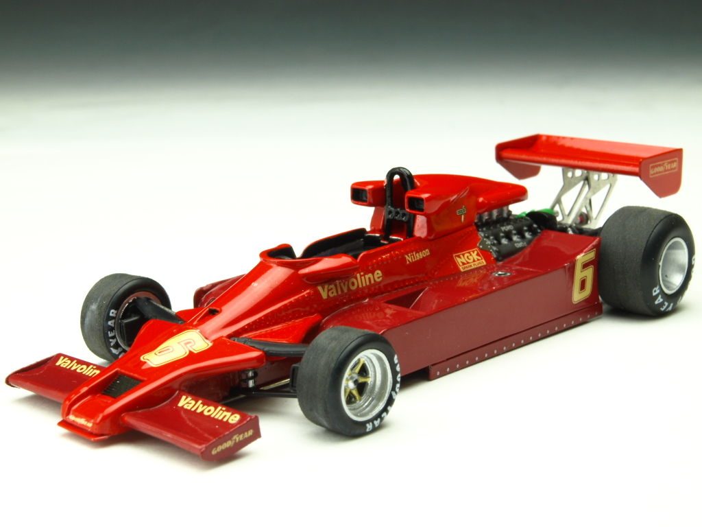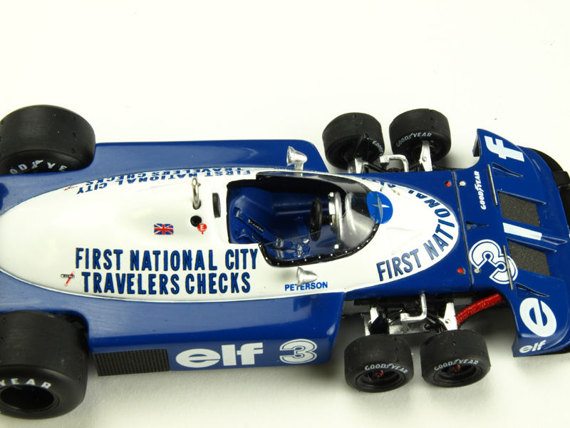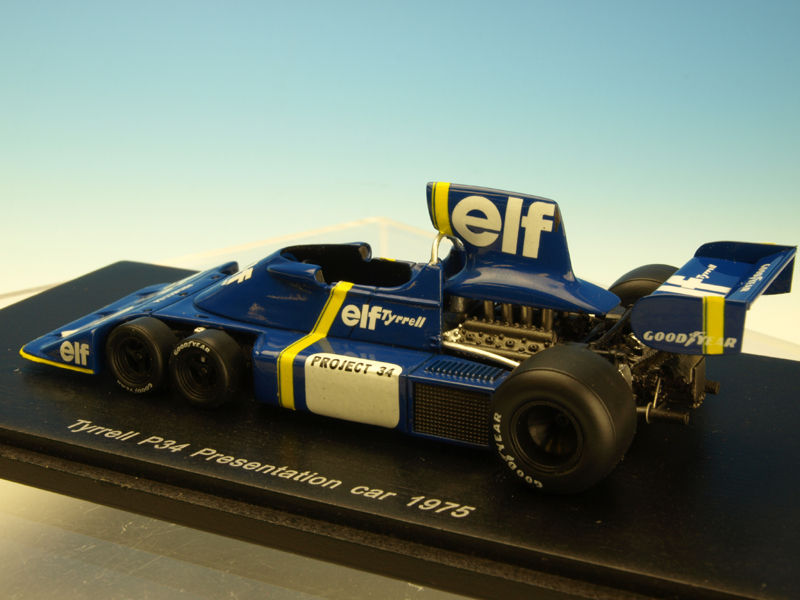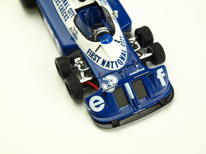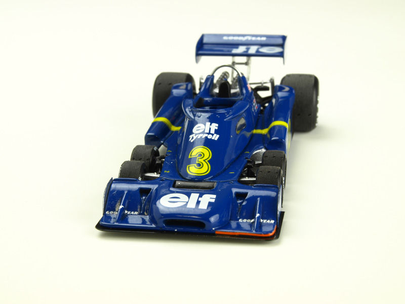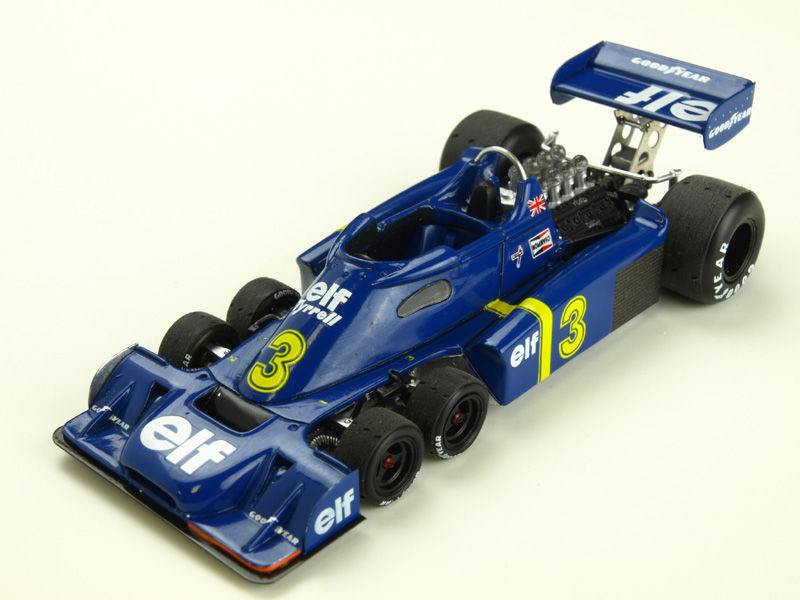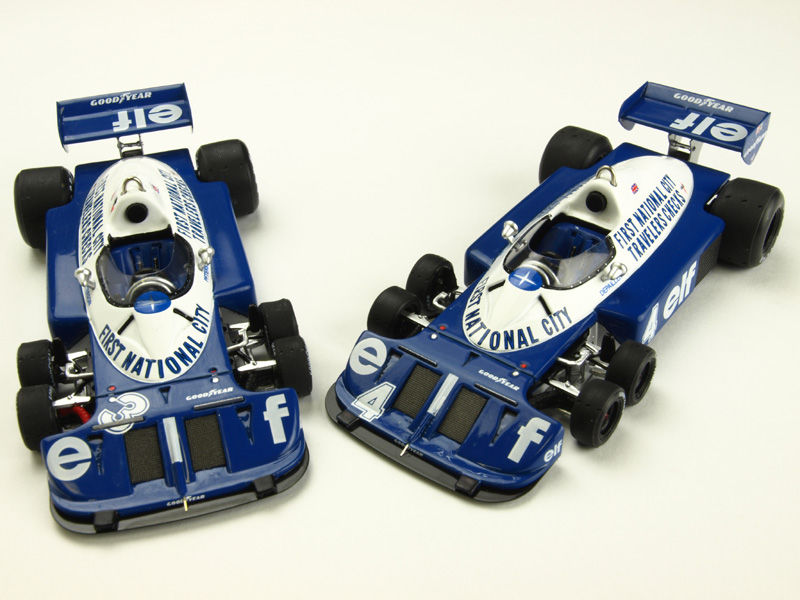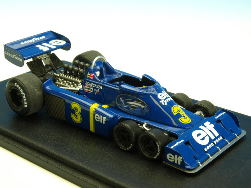 『プレゼンテーション仕様』は、基本的なボディシェイプはその後の76年実戦モデルに繋がるデザインでありながら、背の高いインダクションポッドが印象的(76年シーズンにこのタイプは全面禁止となったためお蔵入りとなりましたが・・・)。 元祖6輪として抑えておきたいアイテムです。