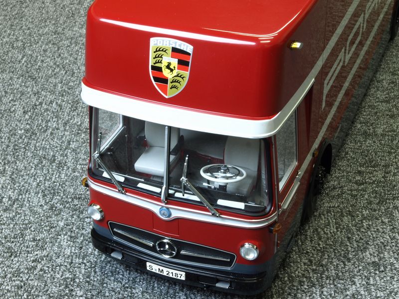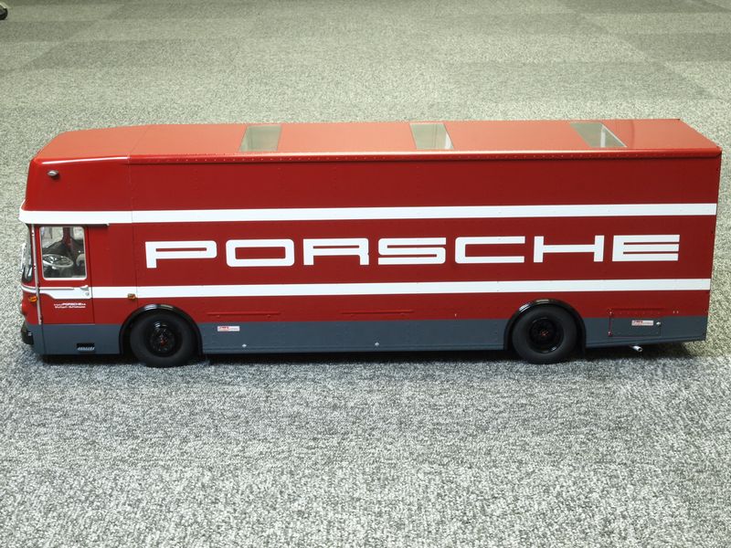 今年の静岡ホビーショーにてサンプルを展示し、その大きさに多くの方々を驚かせた『メルセデス・ベンツO317 PORSCHEレーシングトランスポーター』がついに入荷。 今回は細部までご紹介いたします。