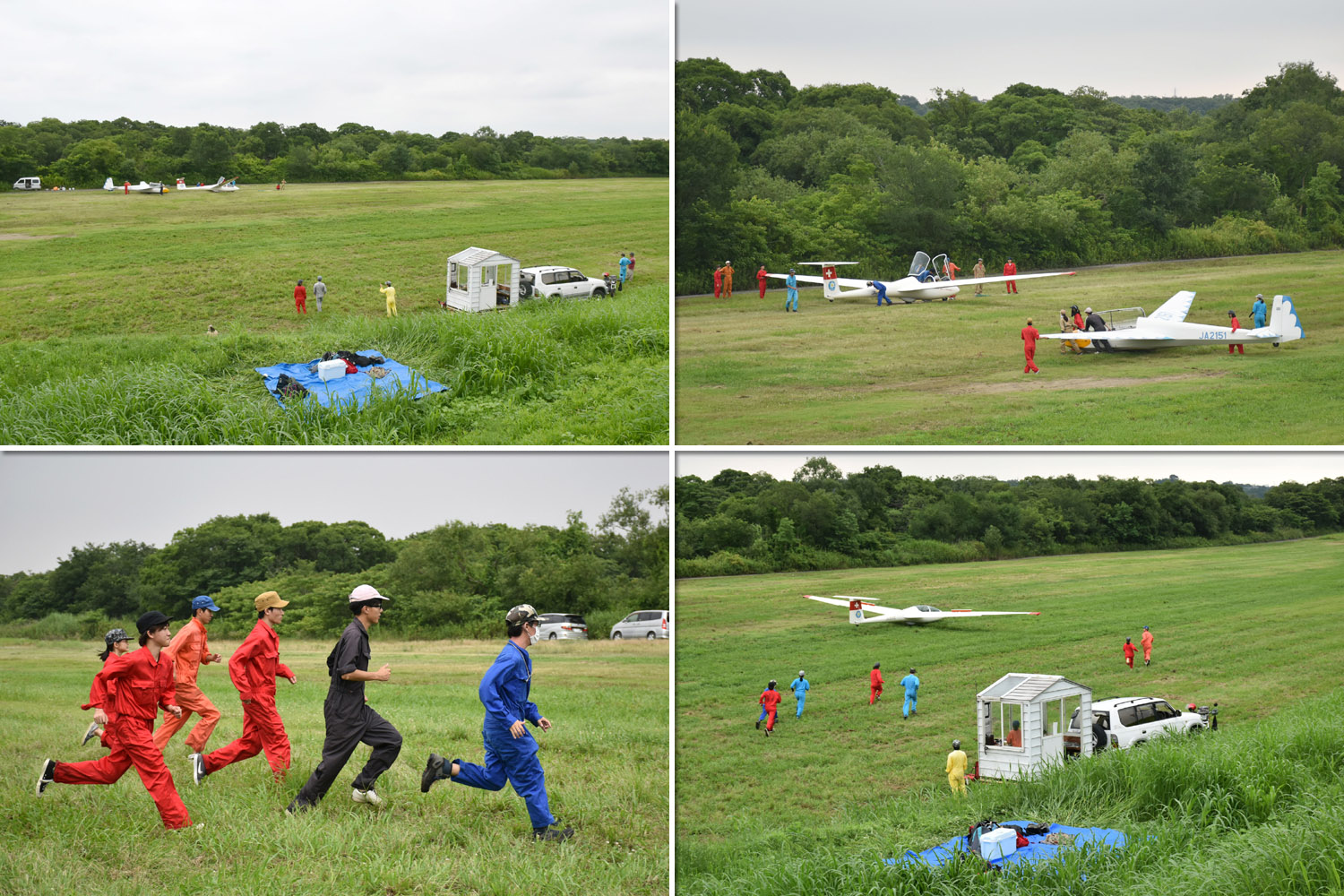 新しいツナギ姿の新人たちは女性部員が多く、2度目の合宿になると、動きもスムーズになって来ています。 両日とも飛行回数が回り、プチ滞空も有で良く飛べた合宿でした。