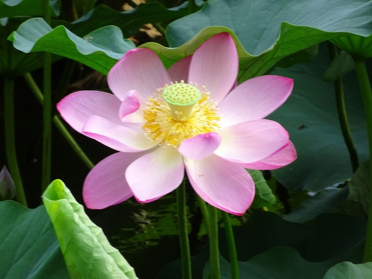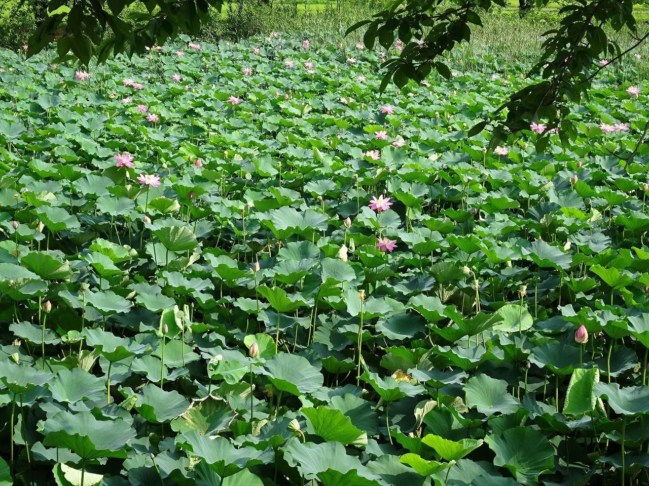 登り口にある大池の蓮池では綺麗な大輪の蓮の花が咲いていた。
