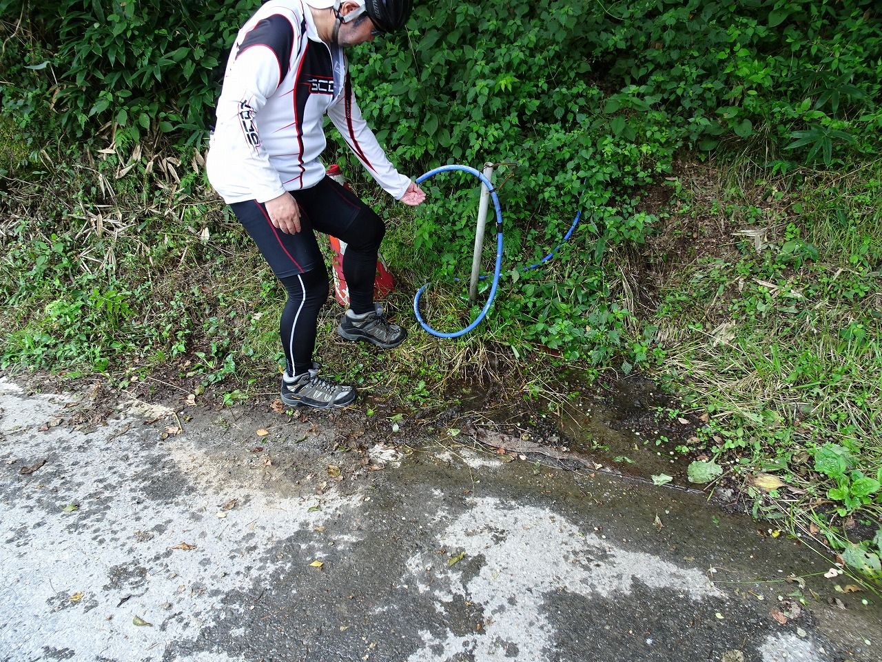 途中、岩さんが止まるから何だと思うと、路端にホースから水がちょろちょろと出ている。