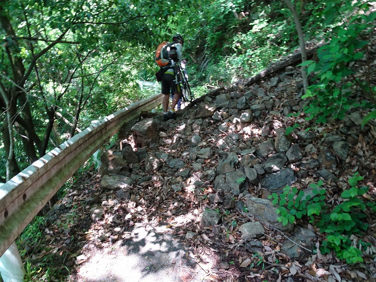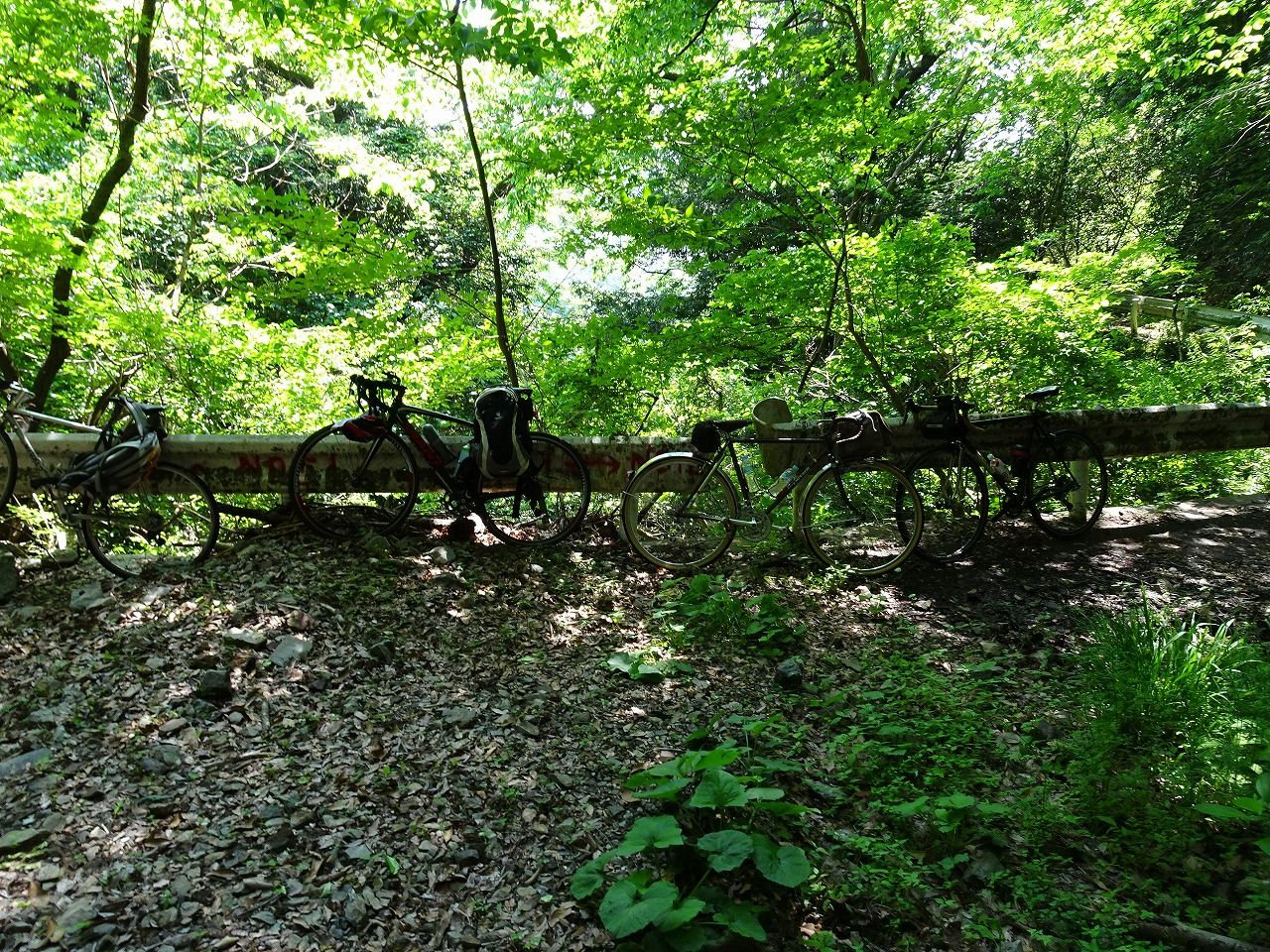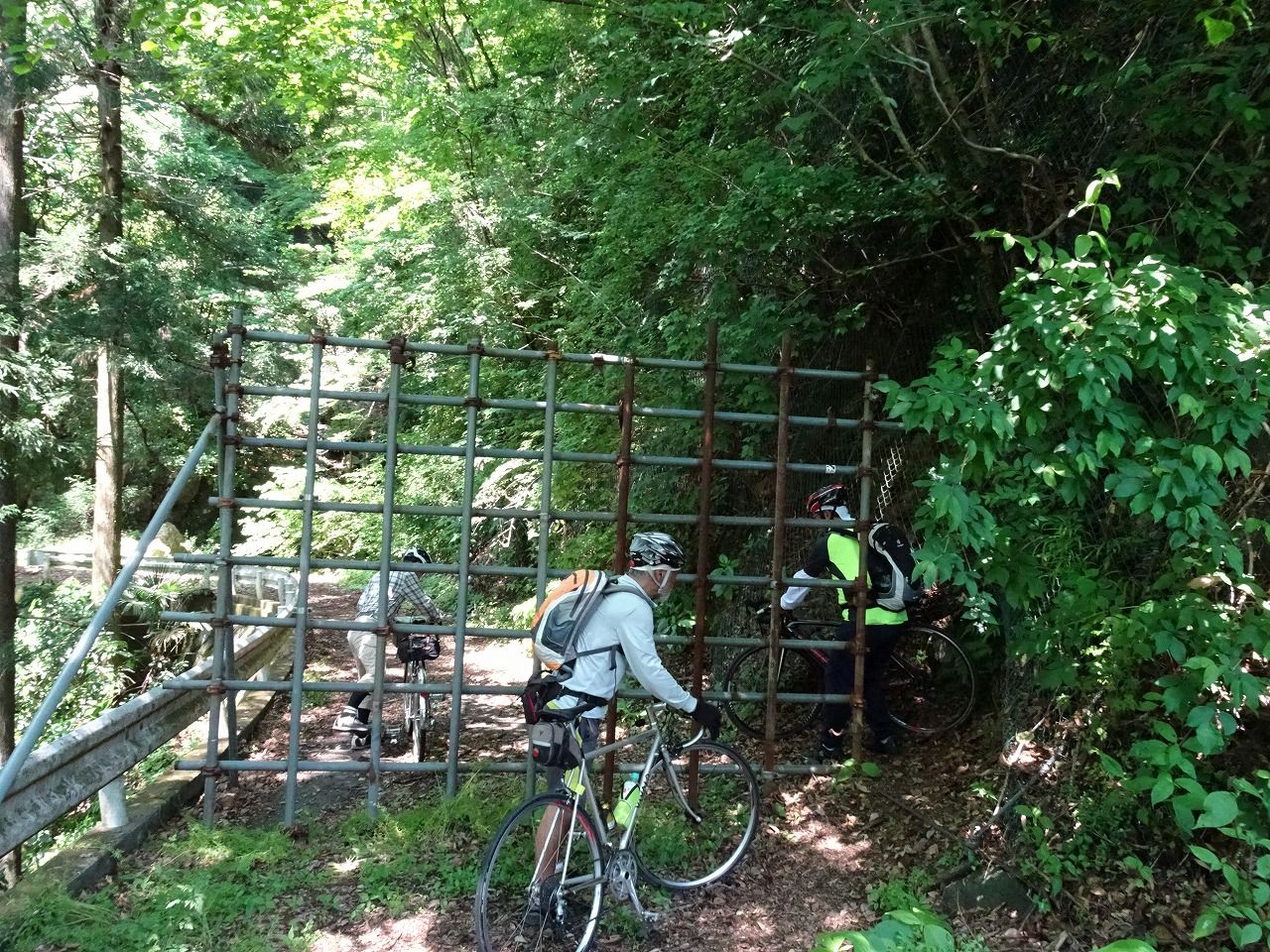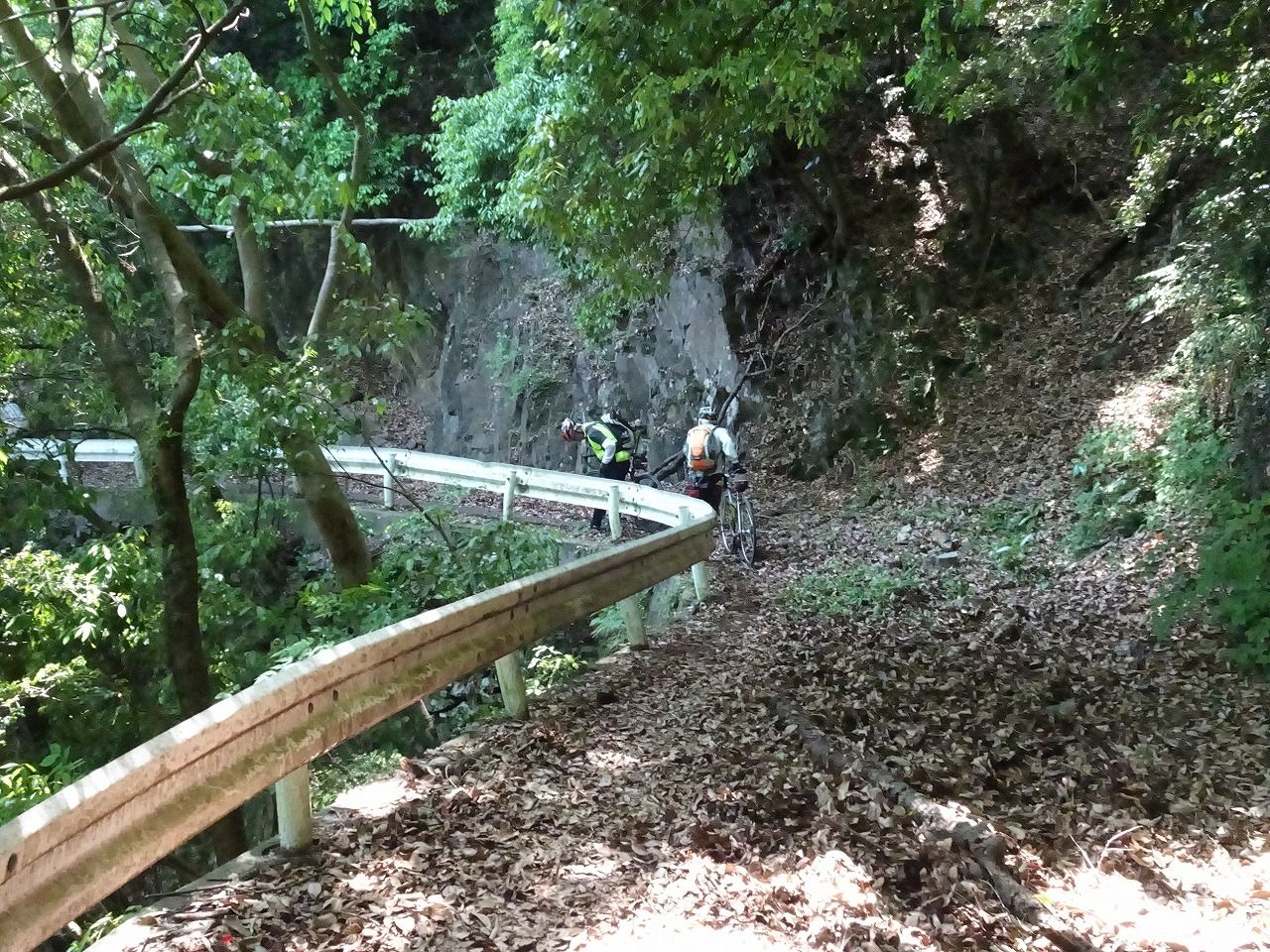 ■しかく津久井湖の北側の廃道はすごかったですね。落石の量が尋常ではなくてガードレールを乗り越えている場所がいくつもありました。岩がとがっていて自転車に乗るのが怖かったです。