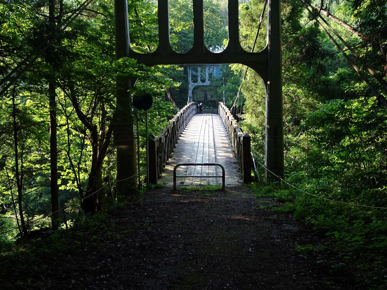 溜まっていて、廃道に近い感のある道を下って行くと吊り橋に