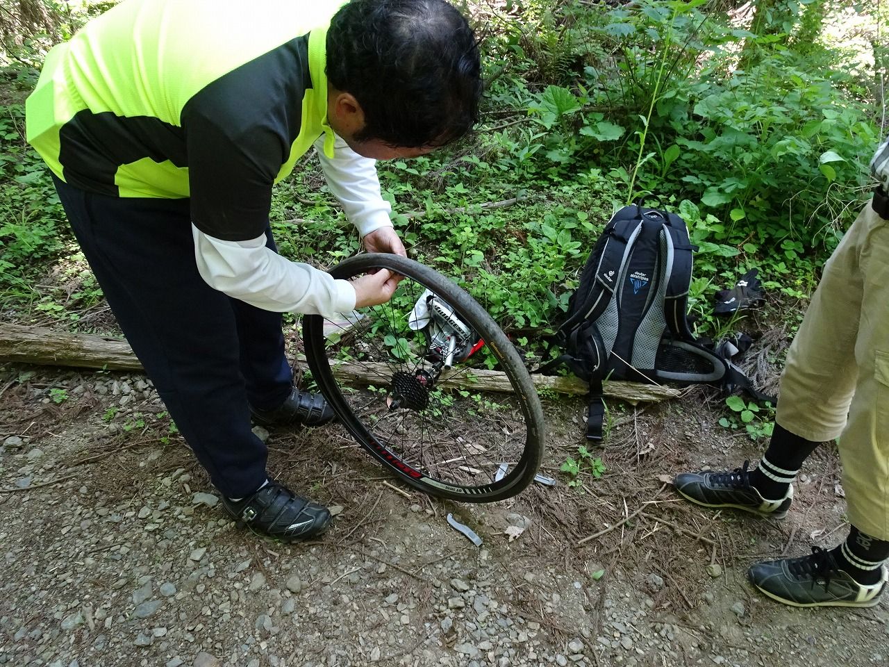 ■しかくパンクは仕方が無いのですが林道に入って早々で、またパンクを繰り返すのではないかと恐れておりました。
