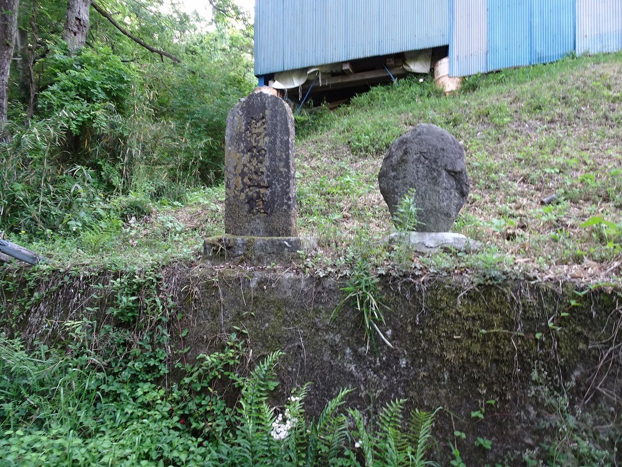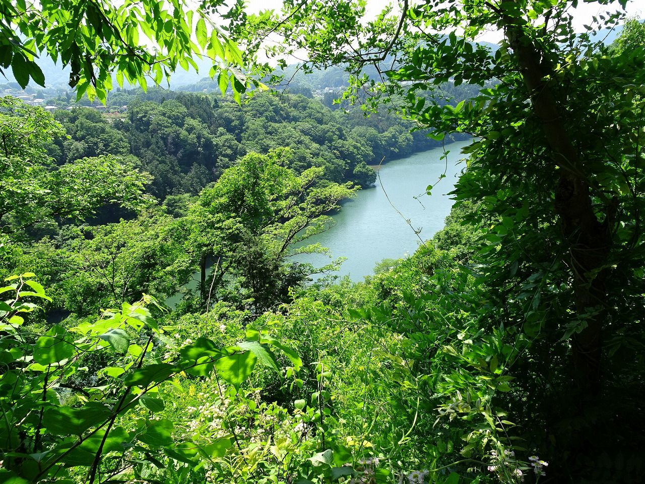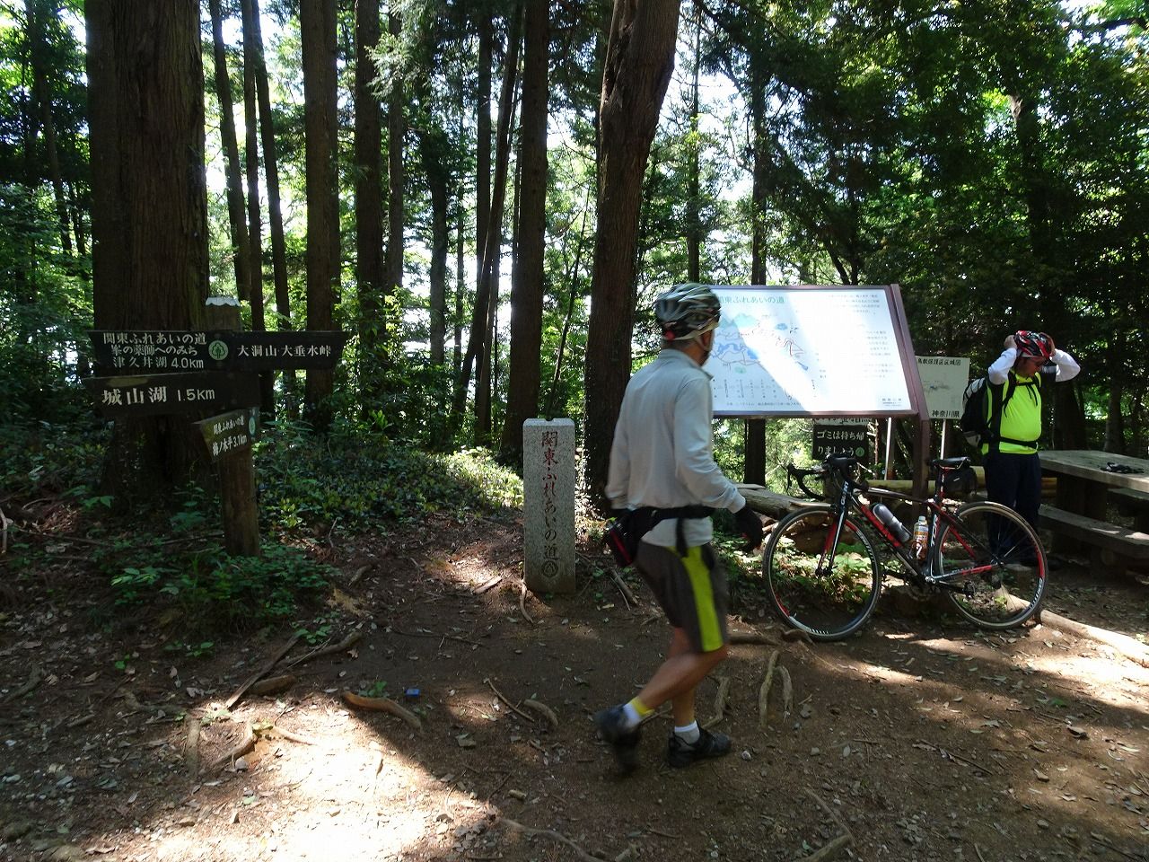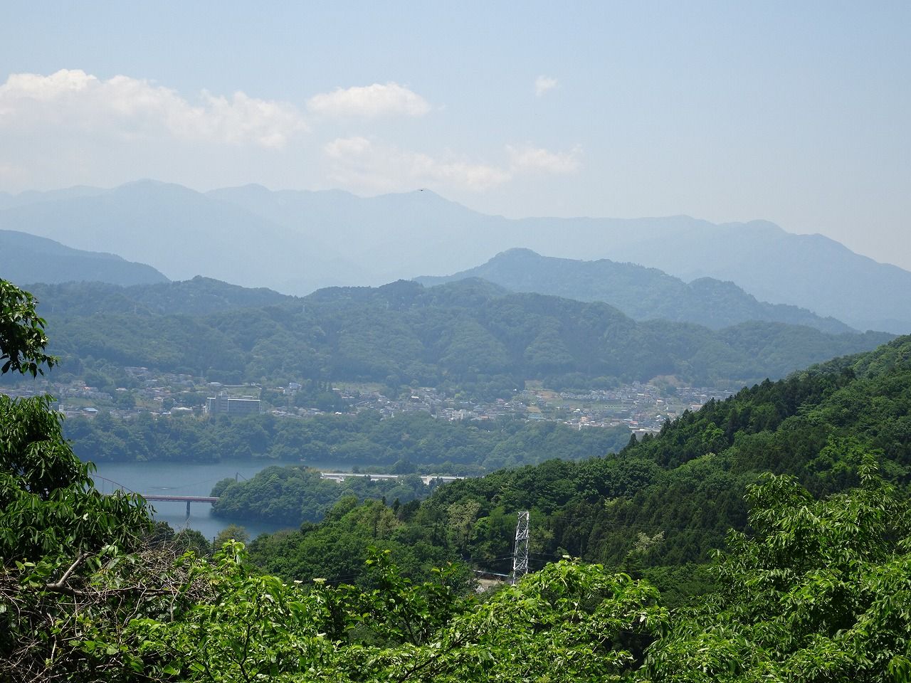 その碑から急な未舗装路をぐんぐん下って行くと城山ダム