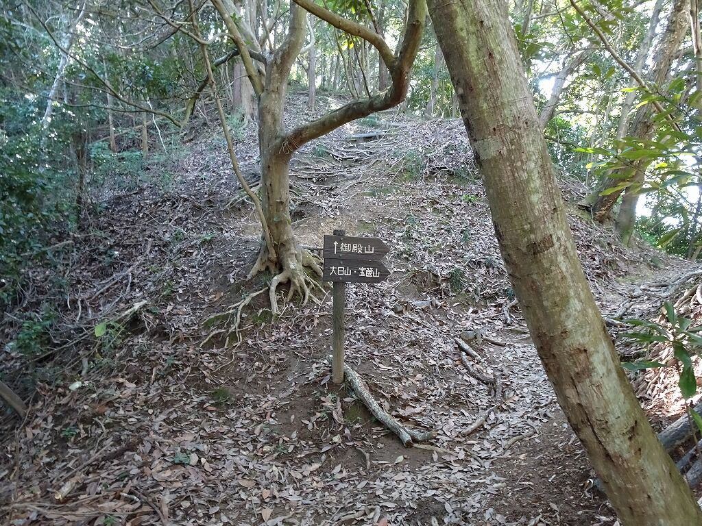 道標が出て来て御殿山はこの急斜面を登り切ったとこらしい。