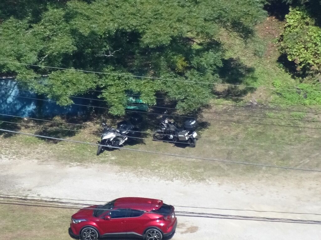 眼下を見下ろせば駐車場に止めたバイクも見える。