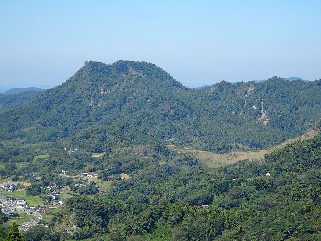 稜線の頂上付近の少し欠けた辺りに後で出て来る、大黒様が祀られている。