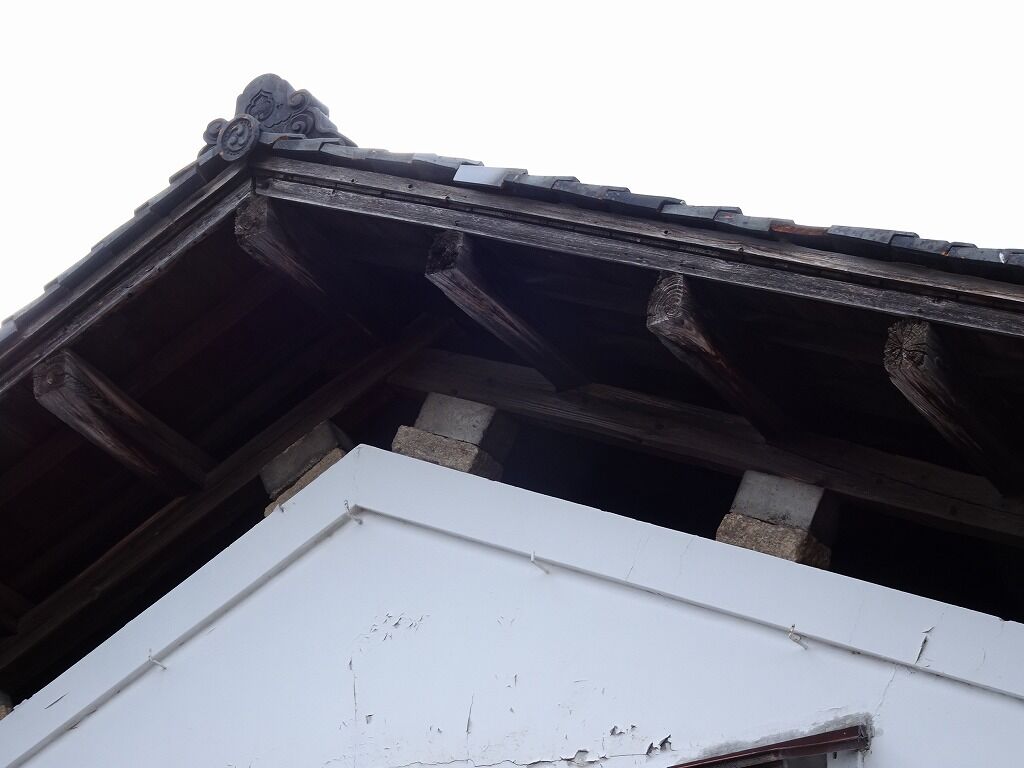 屋根は二重になってて、瓦の乗った屋根の下に、1m近い空間を設け、その下に内装部の屋根を設えてある。