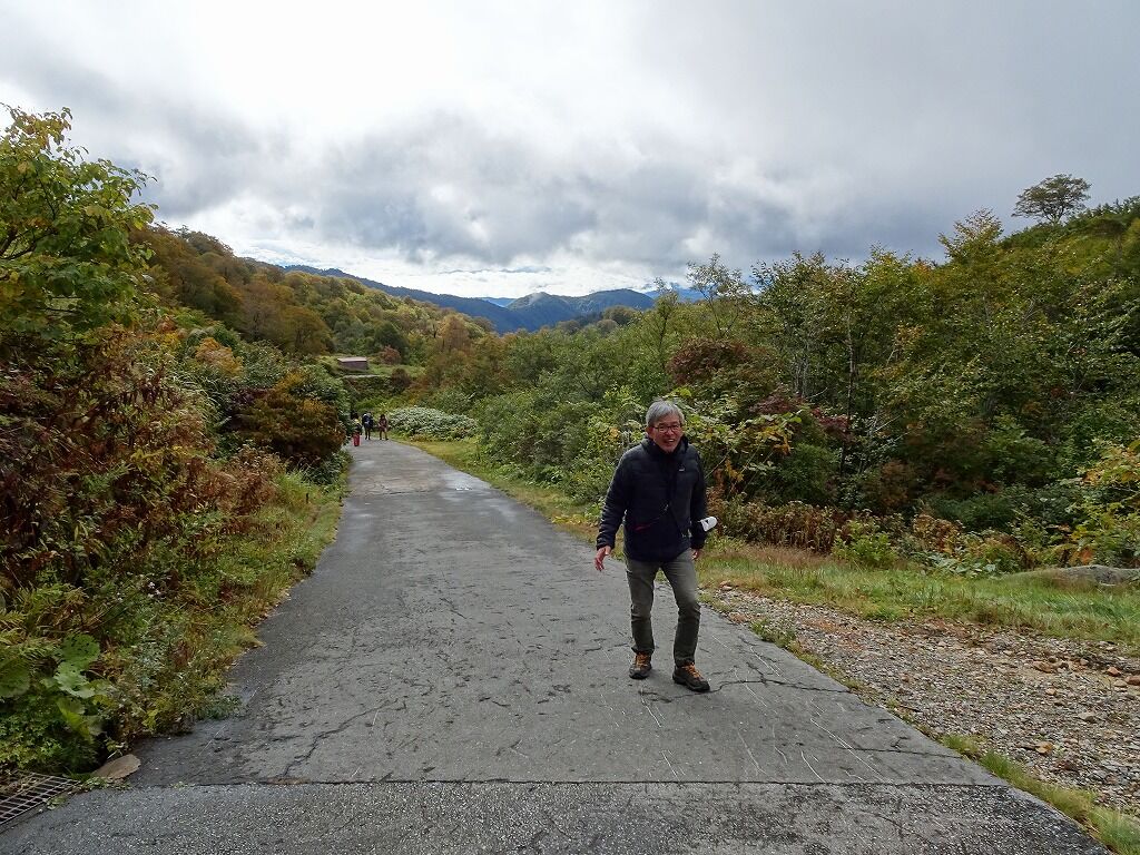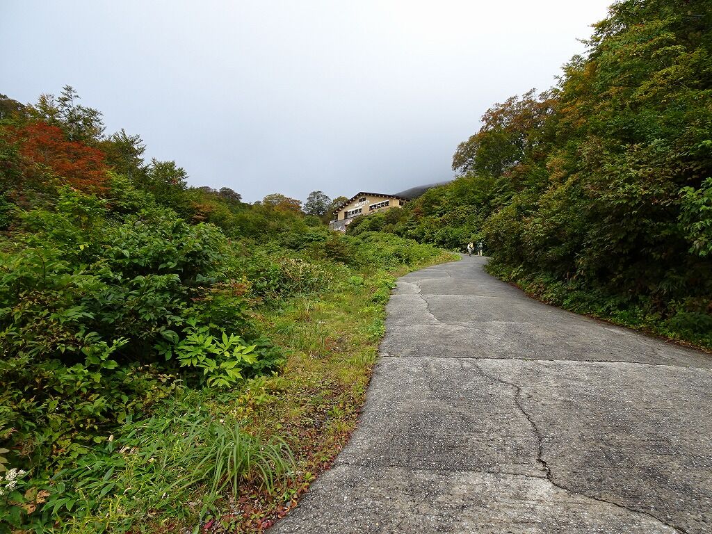 五色沼の先で月山スキー場への案内道標があったので入って見る。