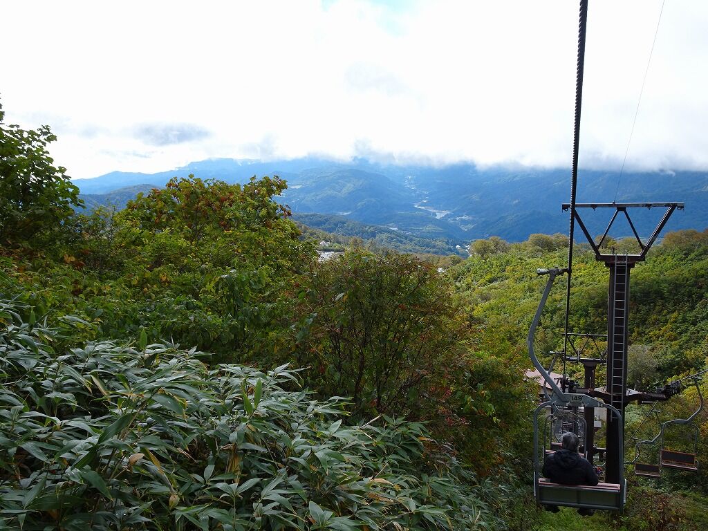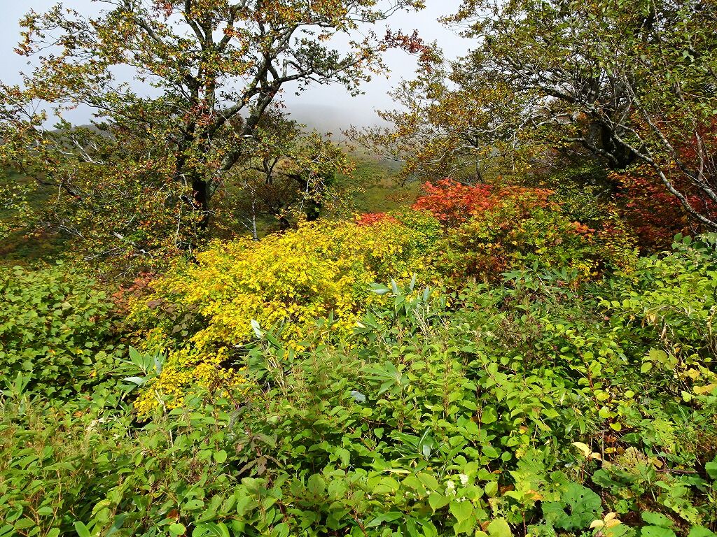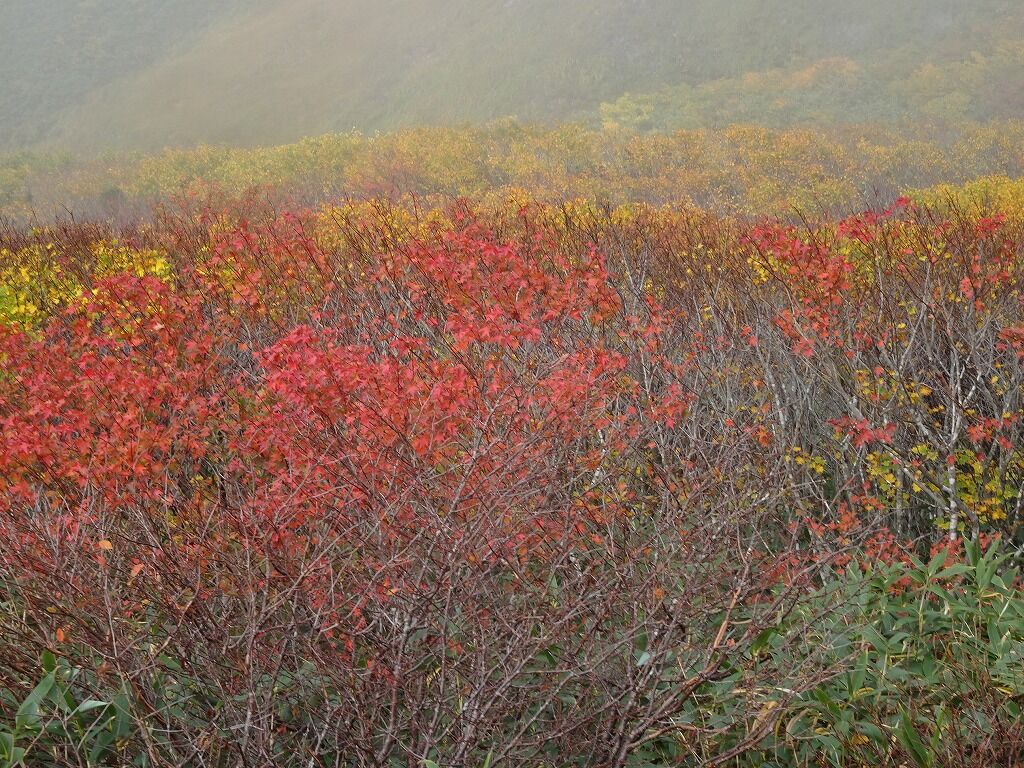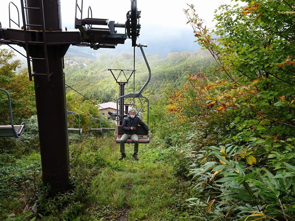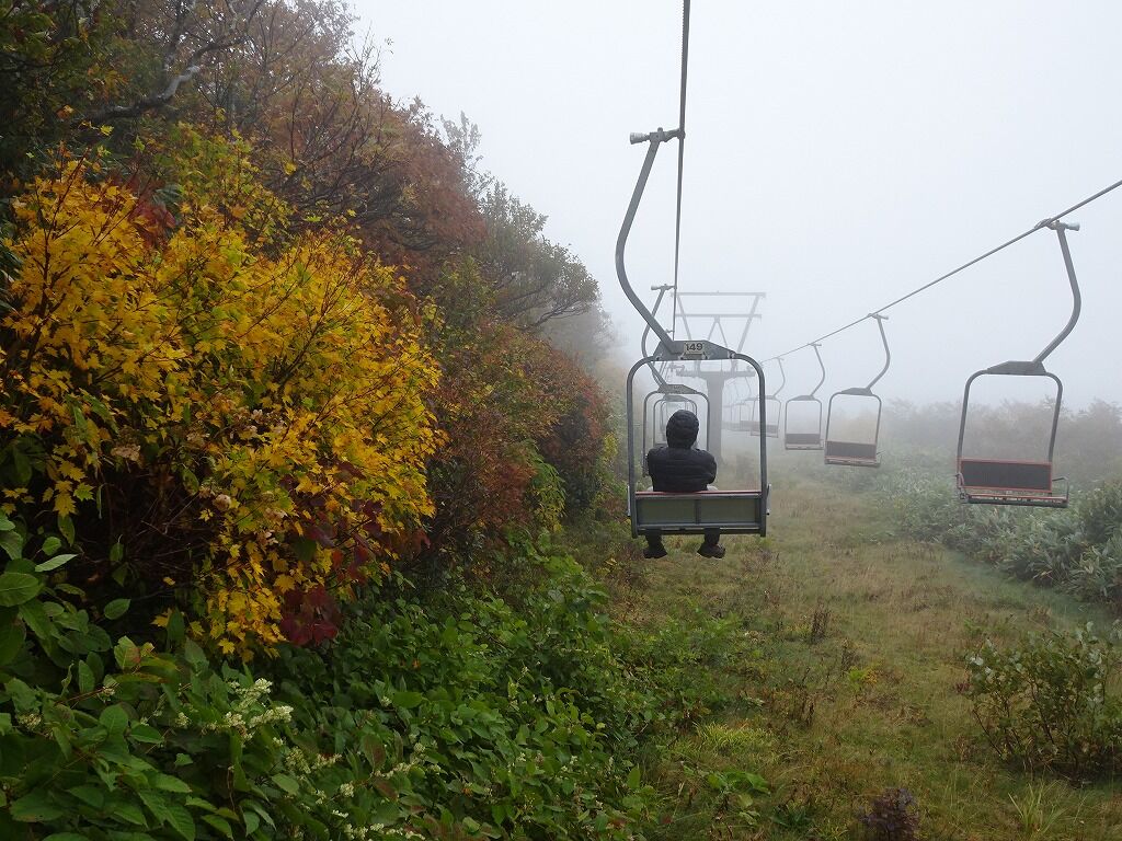 ガスっててよく見えないけど標高1500mほどのリフトの駅付近は紅葉がかなり進んでます。