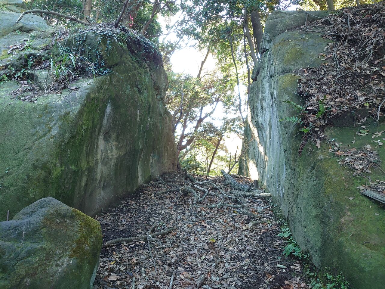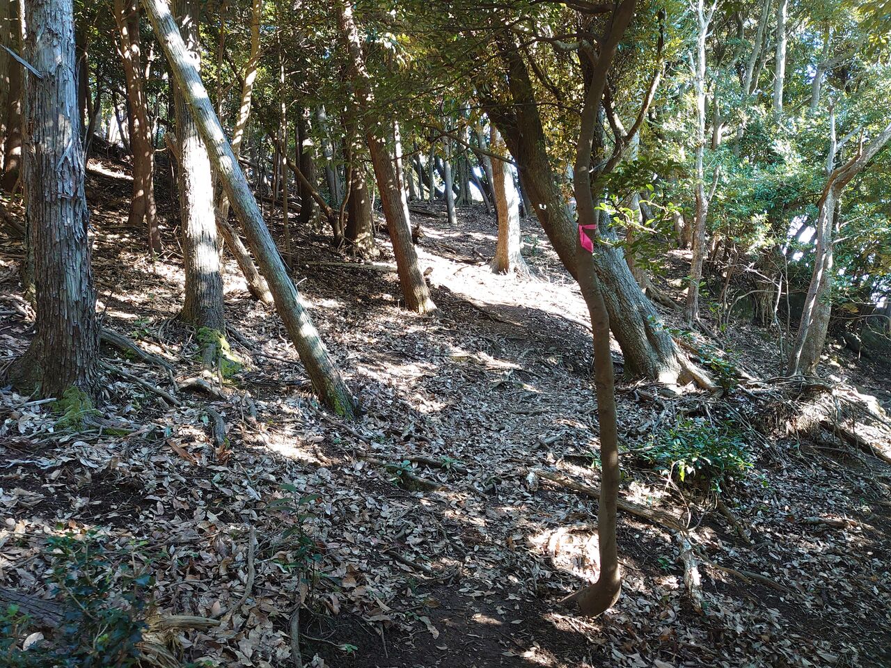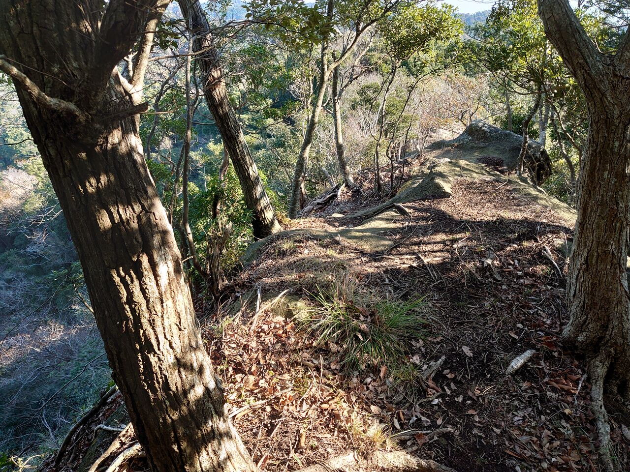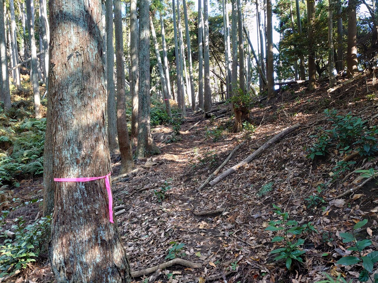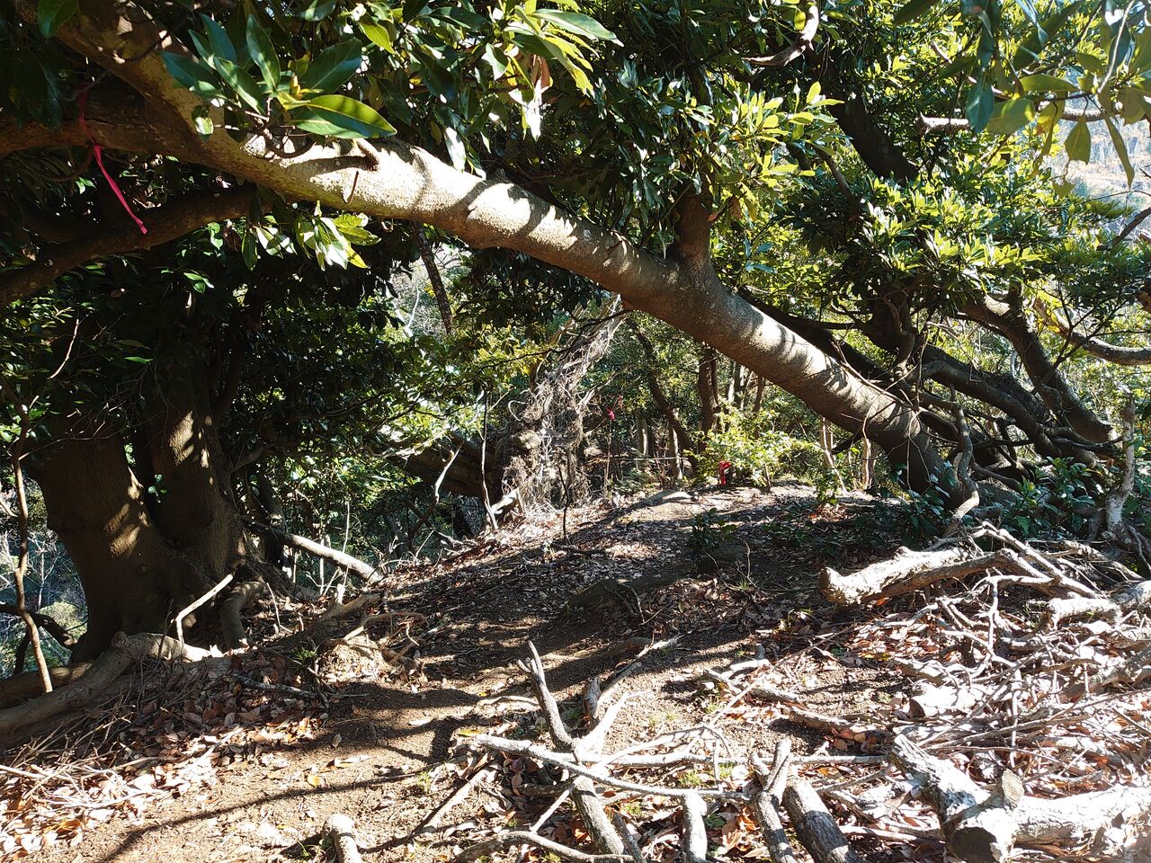 思うに、長狭街道側から登って来て、竹岡側に下りる生活古道の跡なんだろうな。