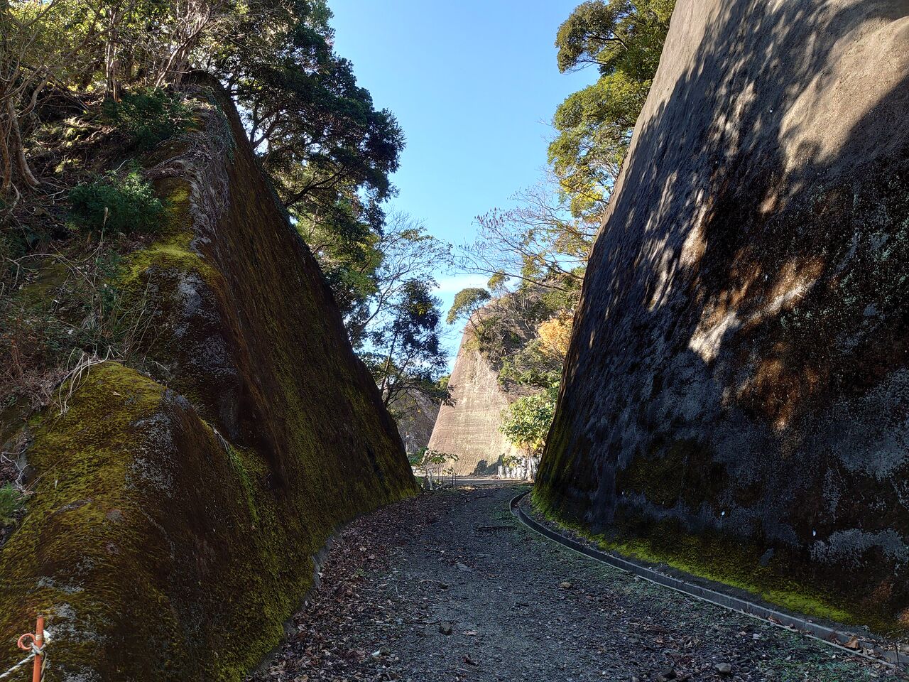 で、やっと下りたら今度は石切り場側のギリギリを行く危ない道。 道幅?