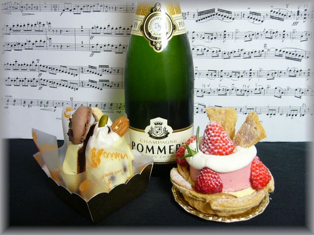 シャンパンとケーキでひとり飲み会だーいv(。・ω・。)v