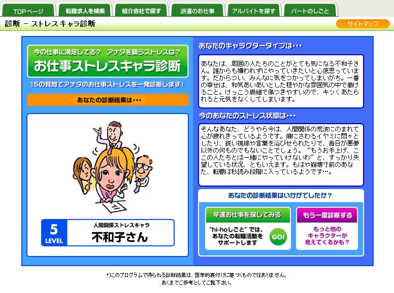 「お仕事ストレスキャラ診断」っていうのをやってみました。